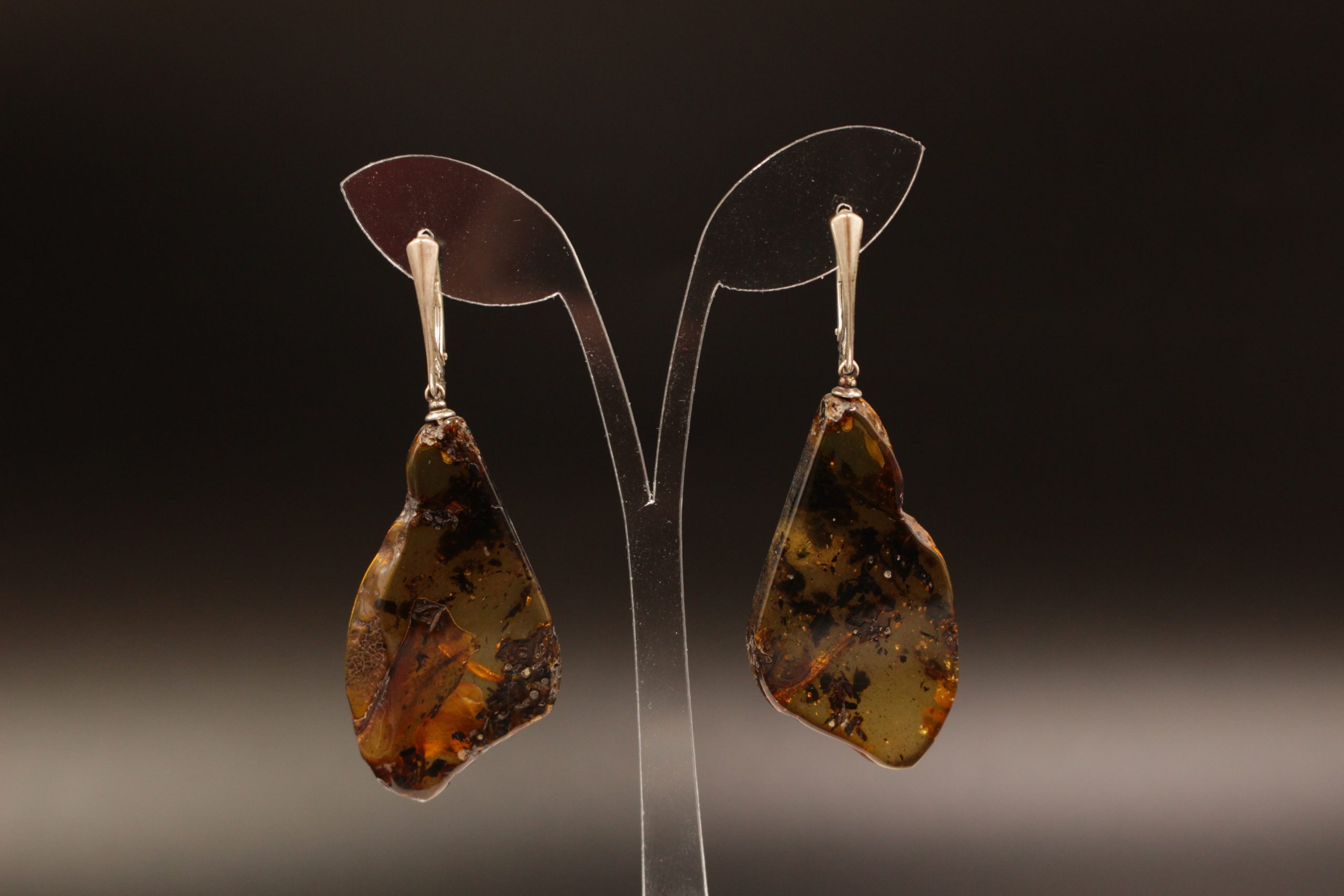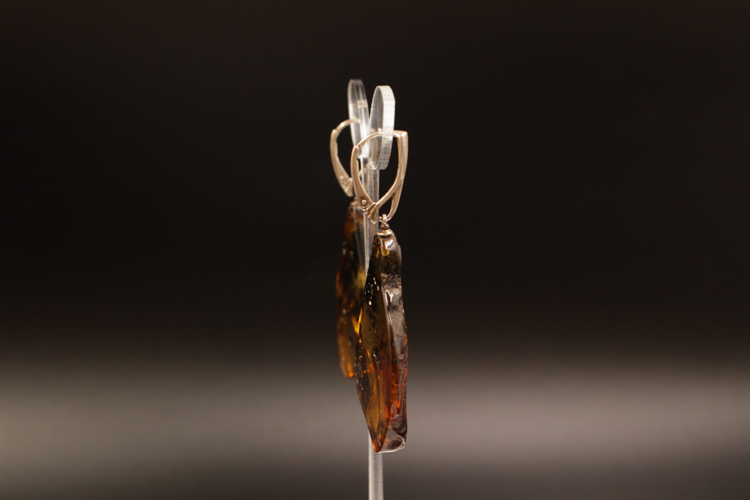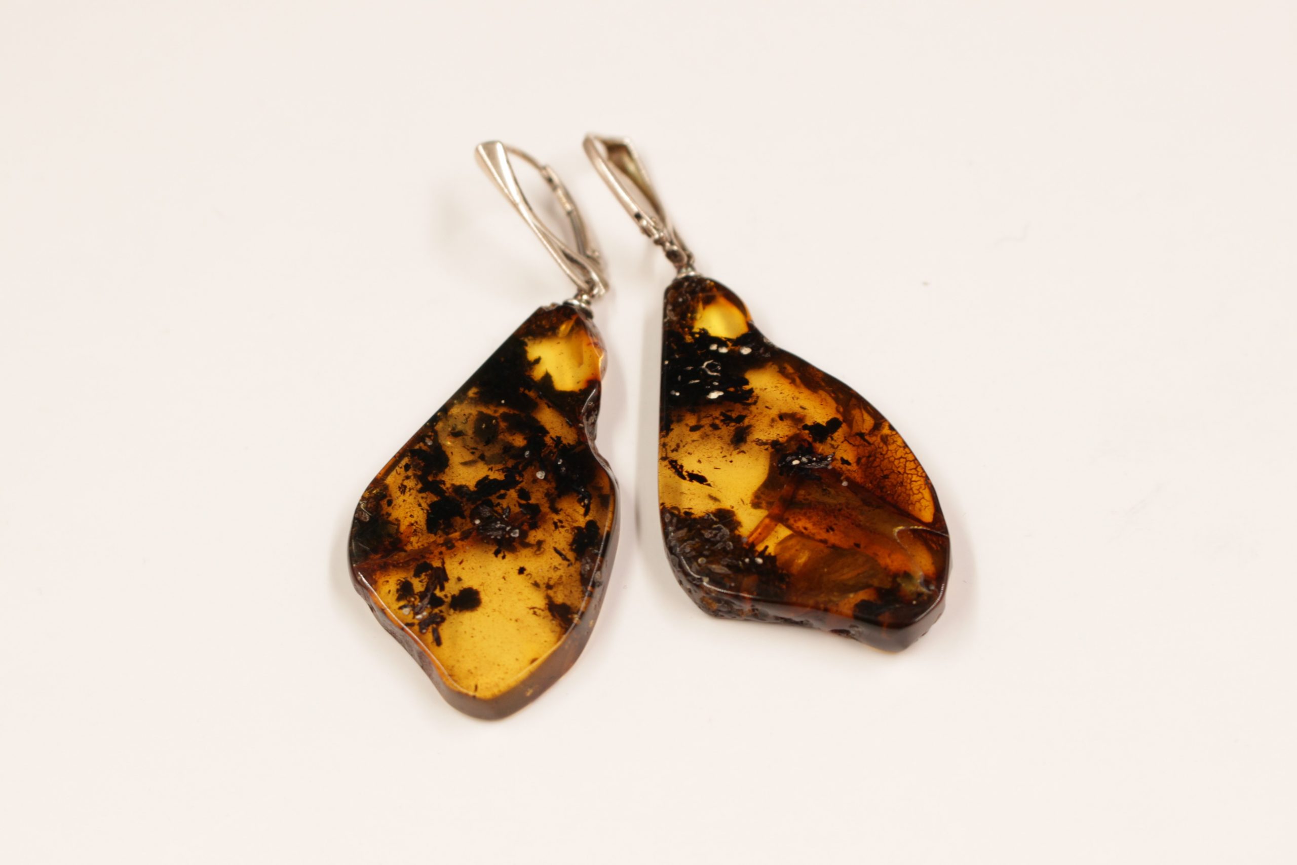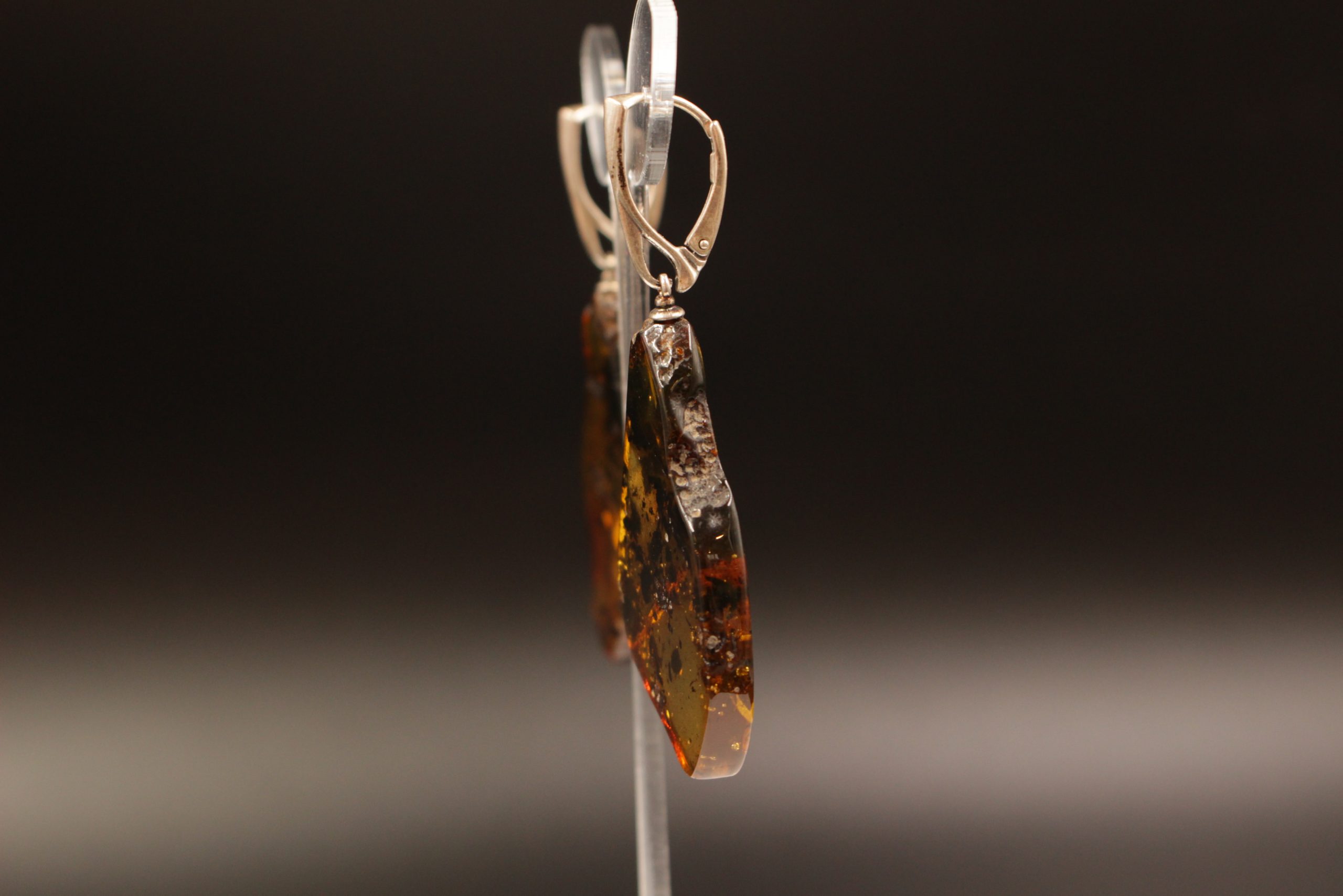 Natūralaus gintaro auskarai, pjauti per pus iš vienos gintaro plokštelės.