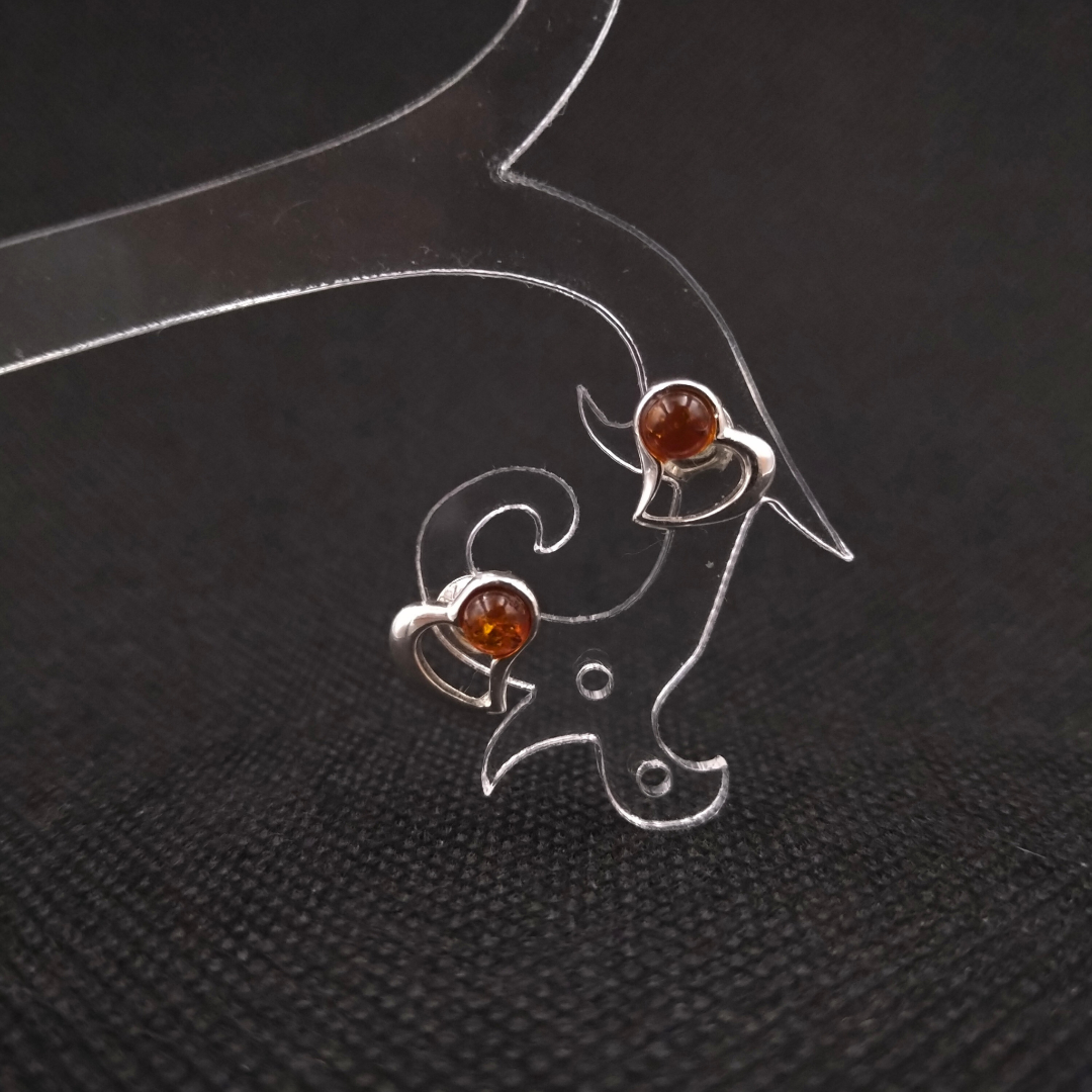 Auskarų dydis ~ 9 x 8.5 mm. Gintariuko dydis: 4 mm.