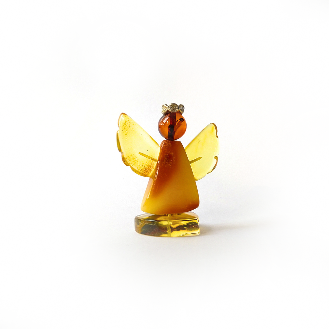 Dekoratyvinė gintarinė figūrėlė angeliukas pagamintas iš natūralaus Baltijos gintaro, kuris garsėja savo kokybe ir unikaliu grožiu. Gintaras gali būti skirtingų atspalvių – nuo švelniai geltonos iki tamsesnės, medaus arba konjako spalvos. Kiekvienas angeliukas yra unikalus, nes natūralūs gintaro intarpai ir raštai niekada nebūna vienodi. Angelas dažnai laikomas dvasinės apsaugos, meilės ir ramybės simboliu.