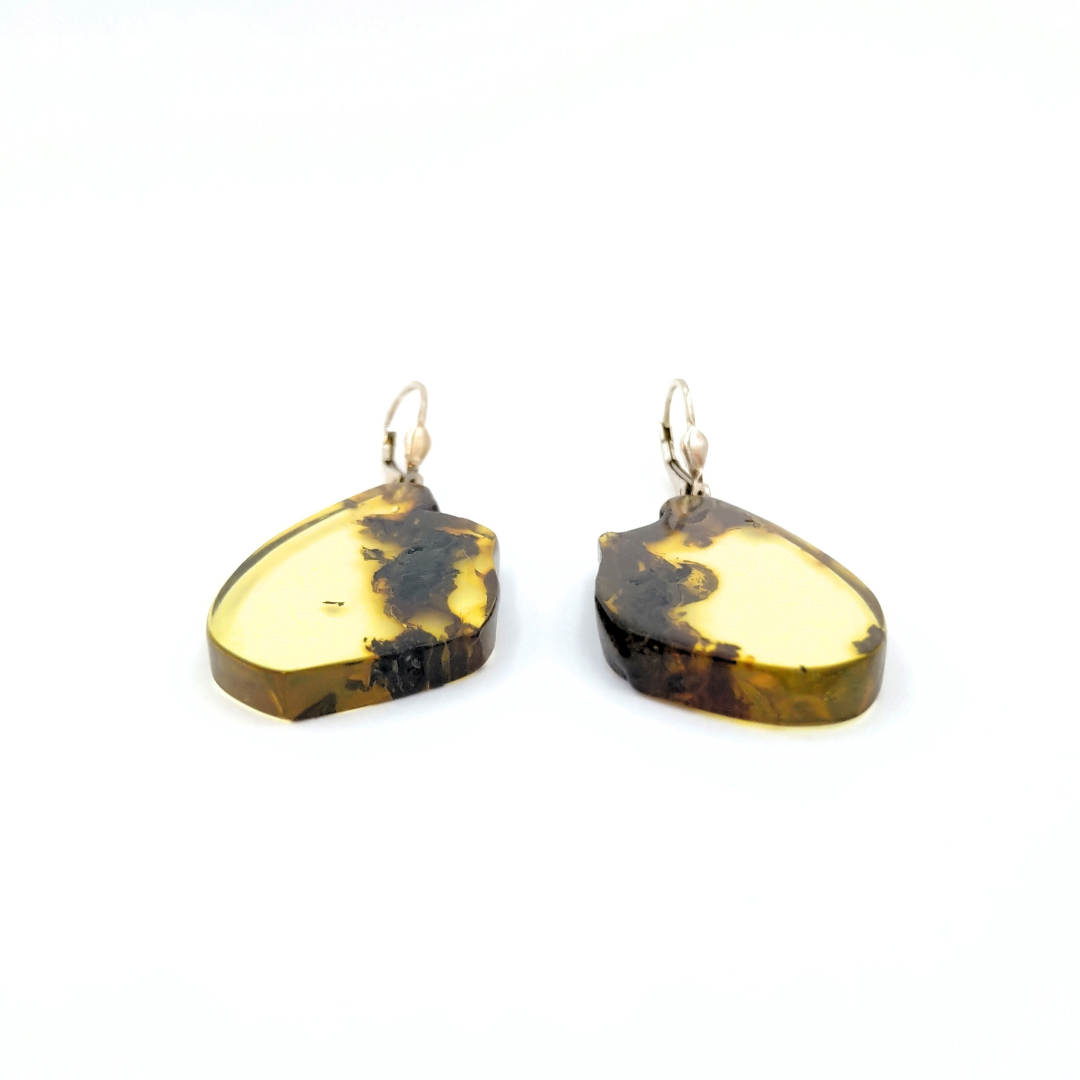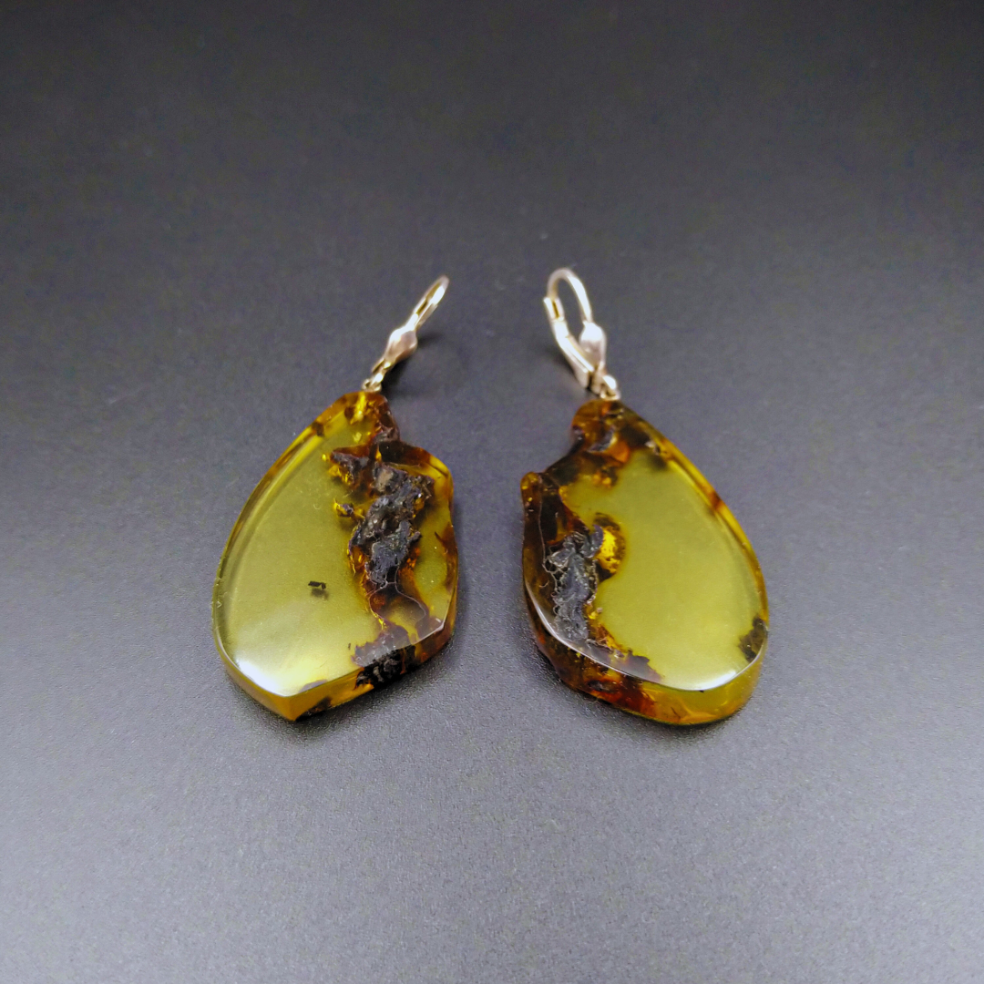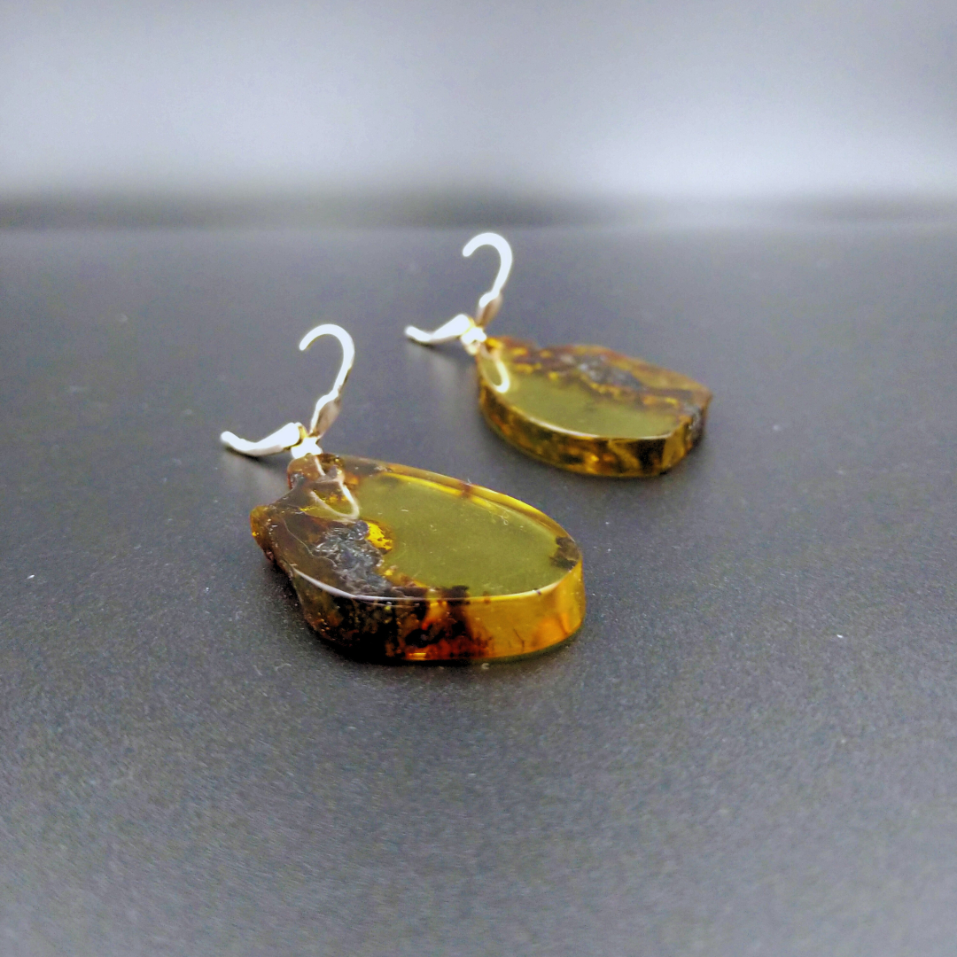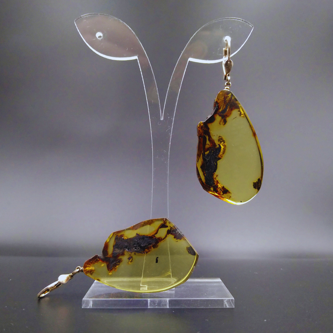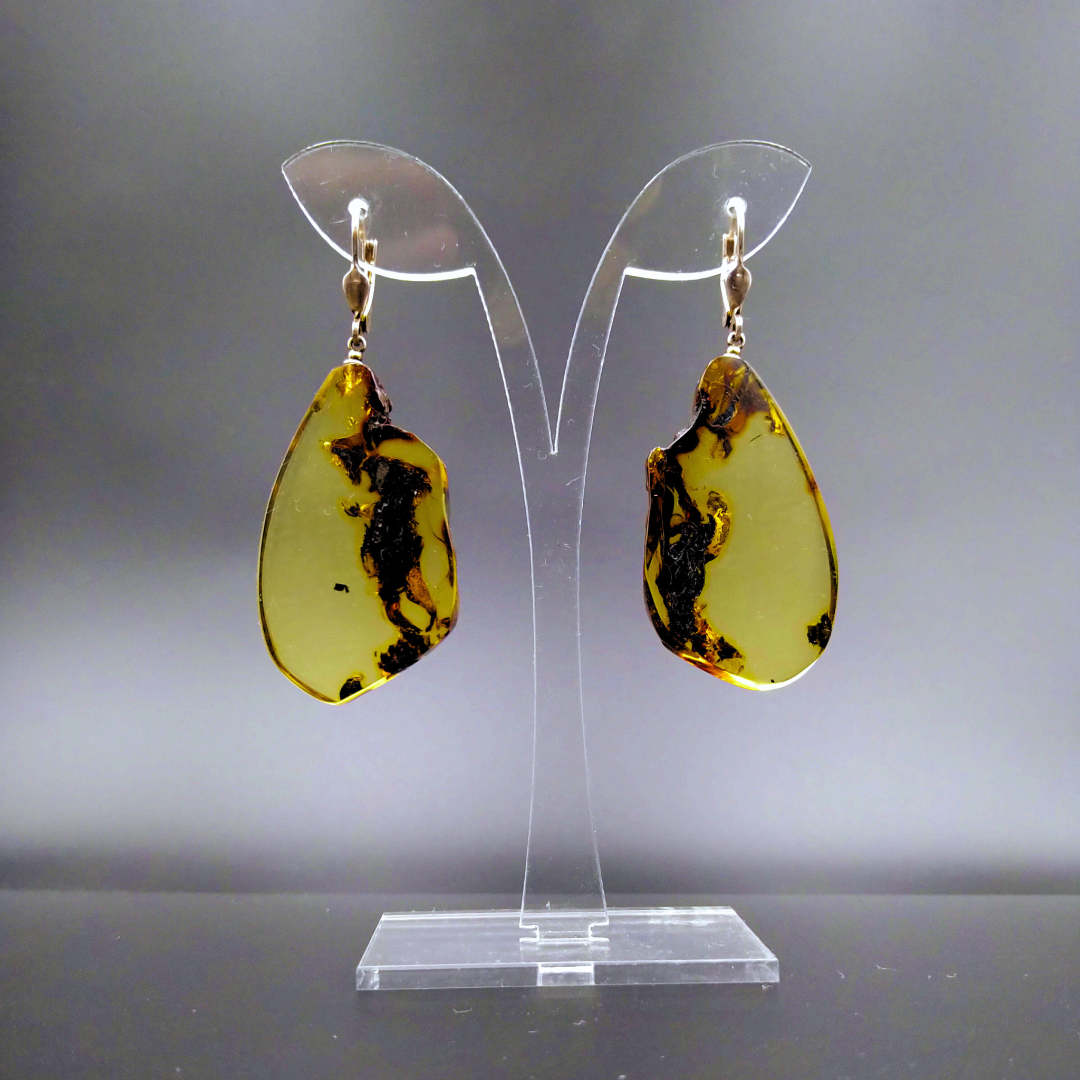 Žavūs ir subtilūs gintariniai auskarai iš permatomo gintaro plokštelių.