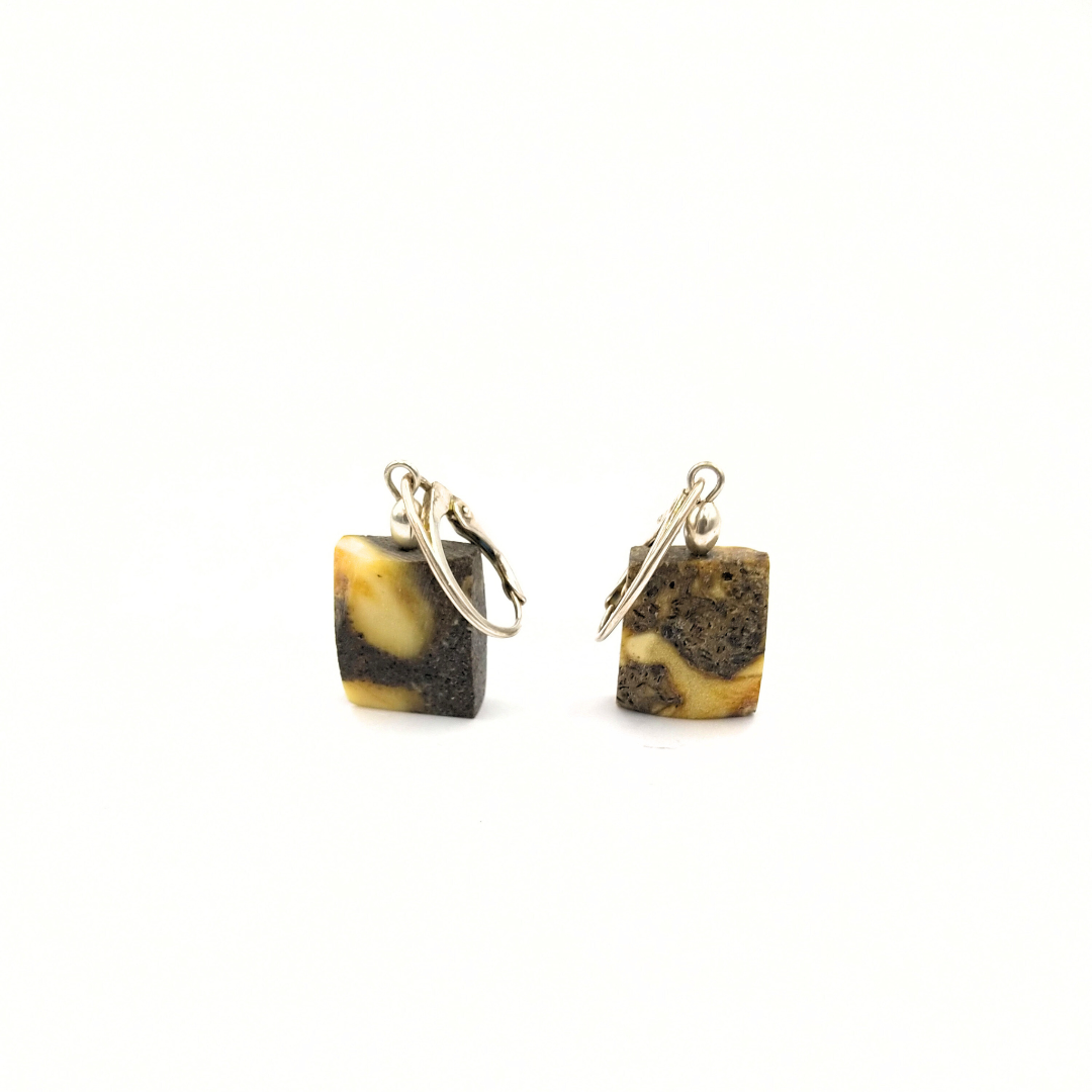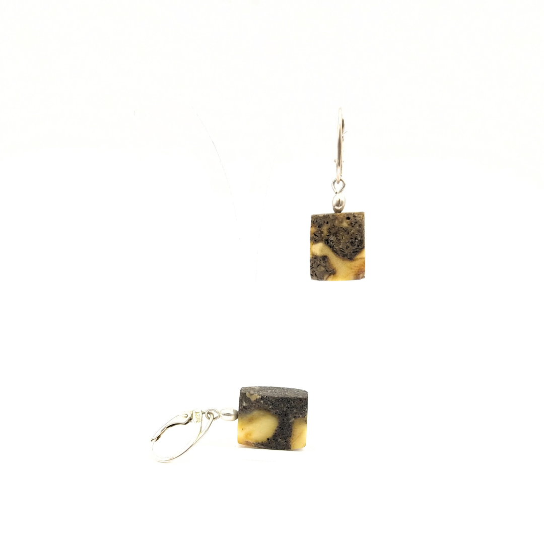Gintarinio pakabuko dydis be kabliukų ~ 13 x 25 mm. Užsegami auskarai kabliukai.