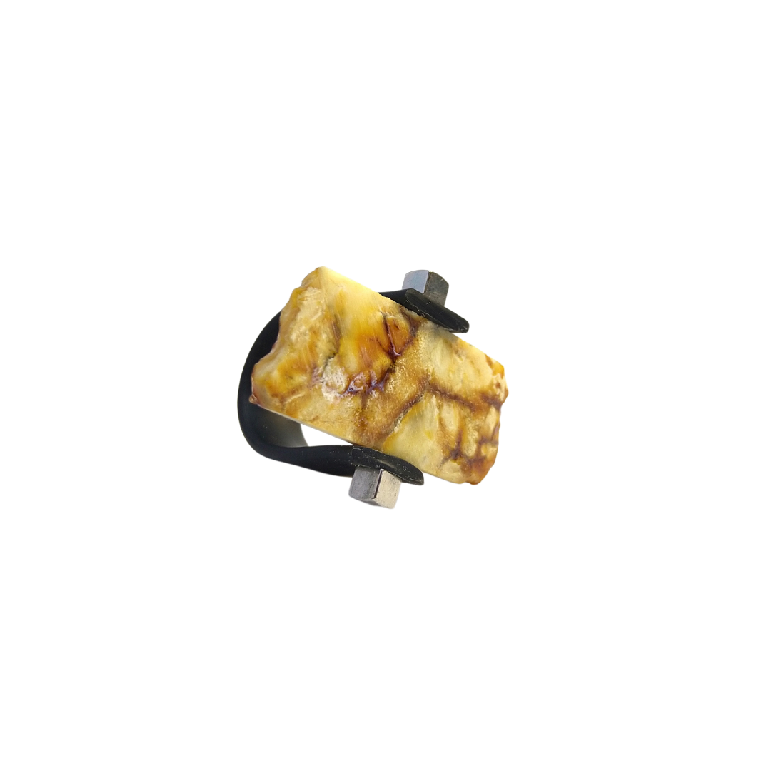 Kaučiukinis žiedas su gintaru