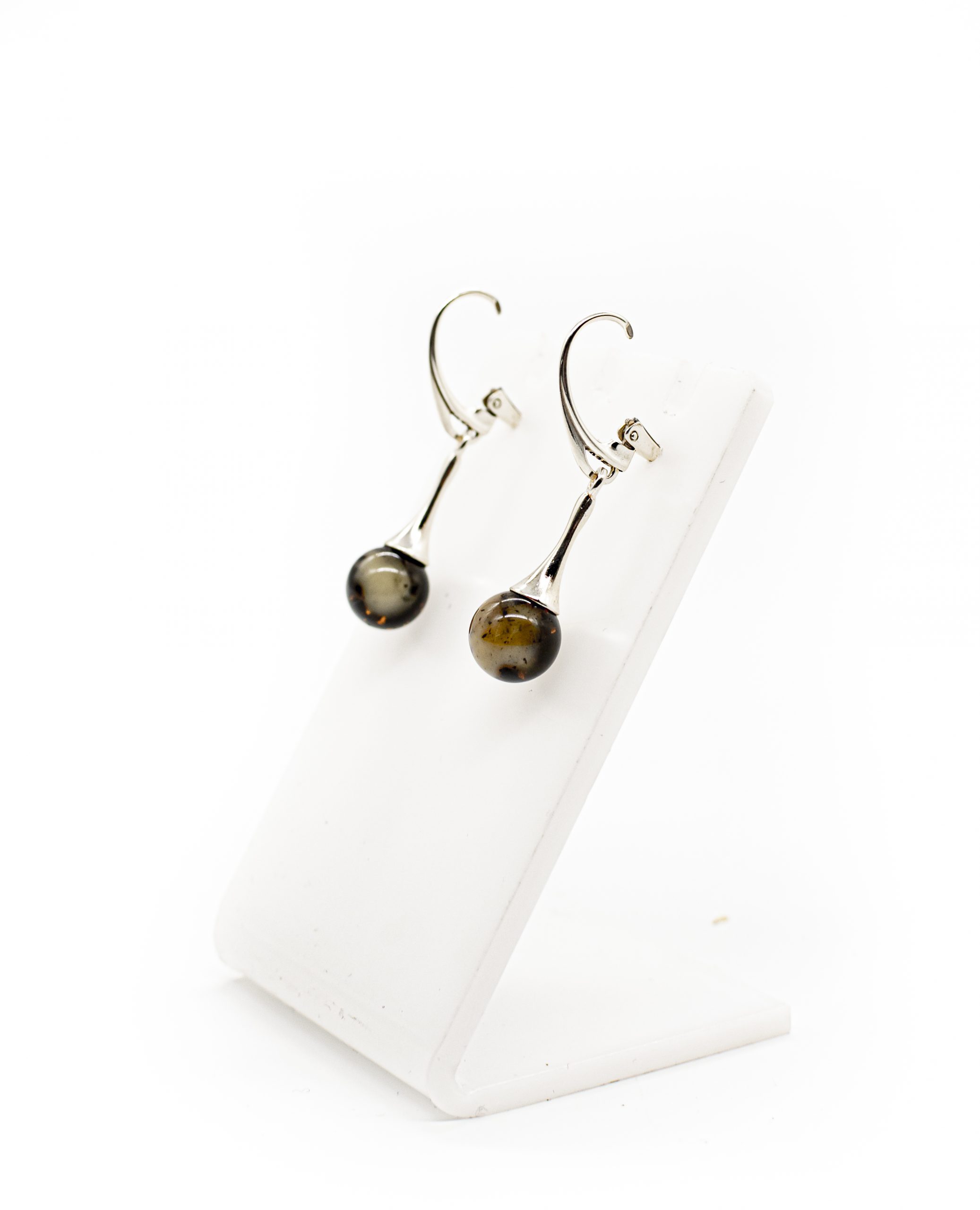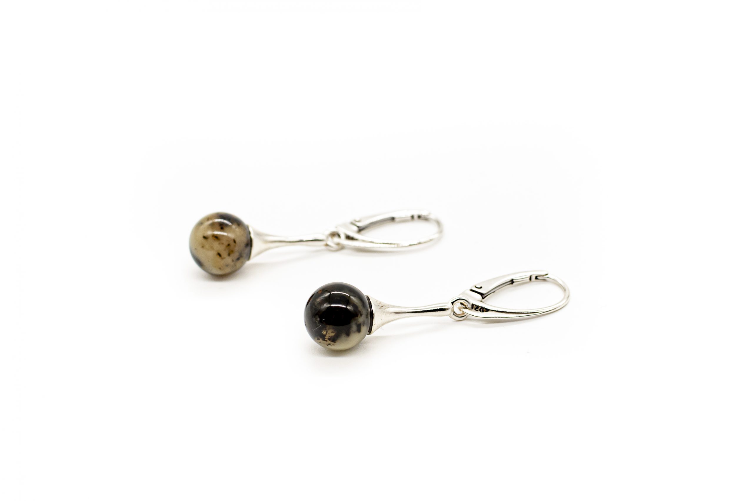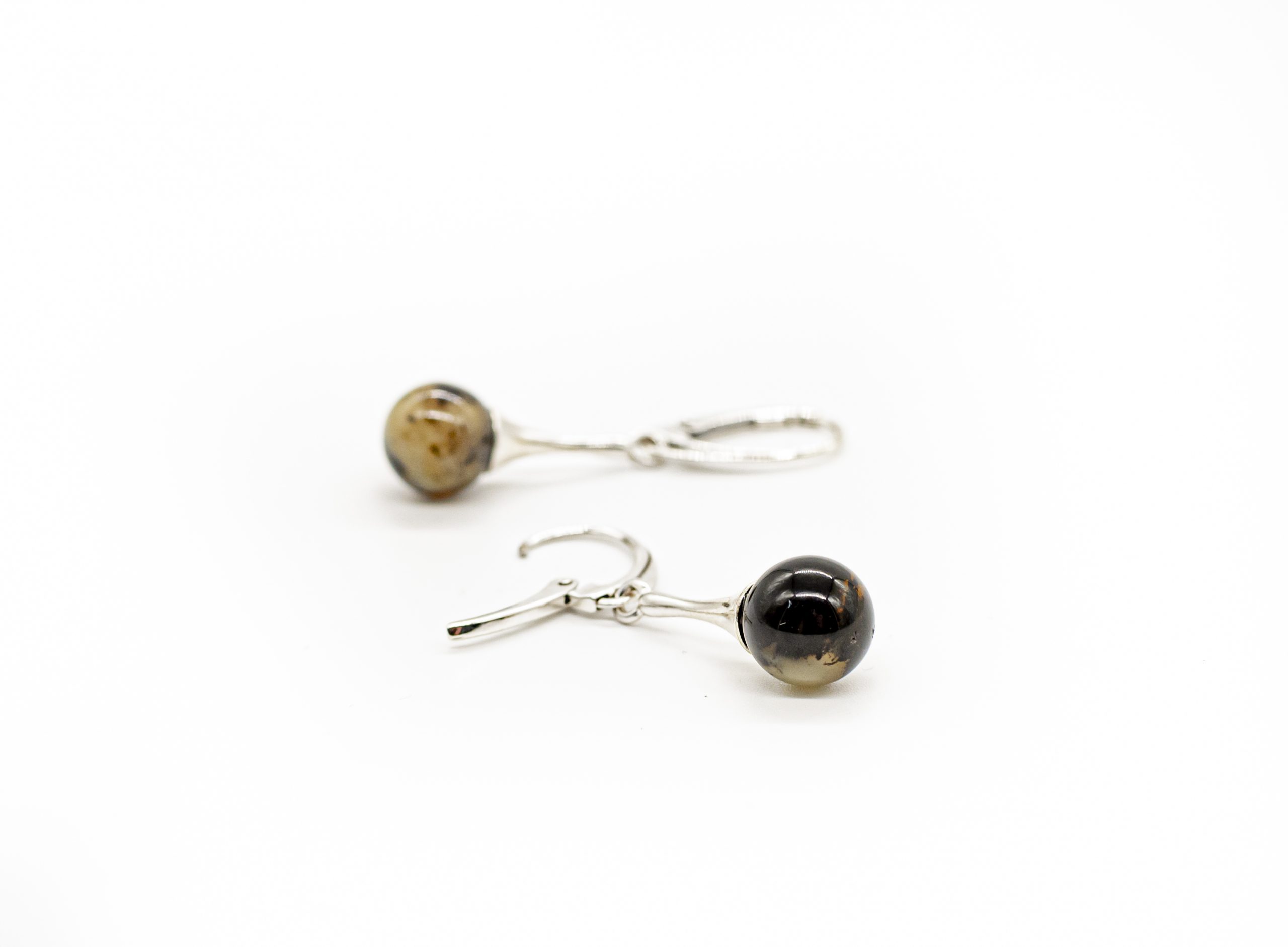 Nedideli margo gintaro auskarai iš gydymojo sidabro ir gintarinių burbuliukų.
