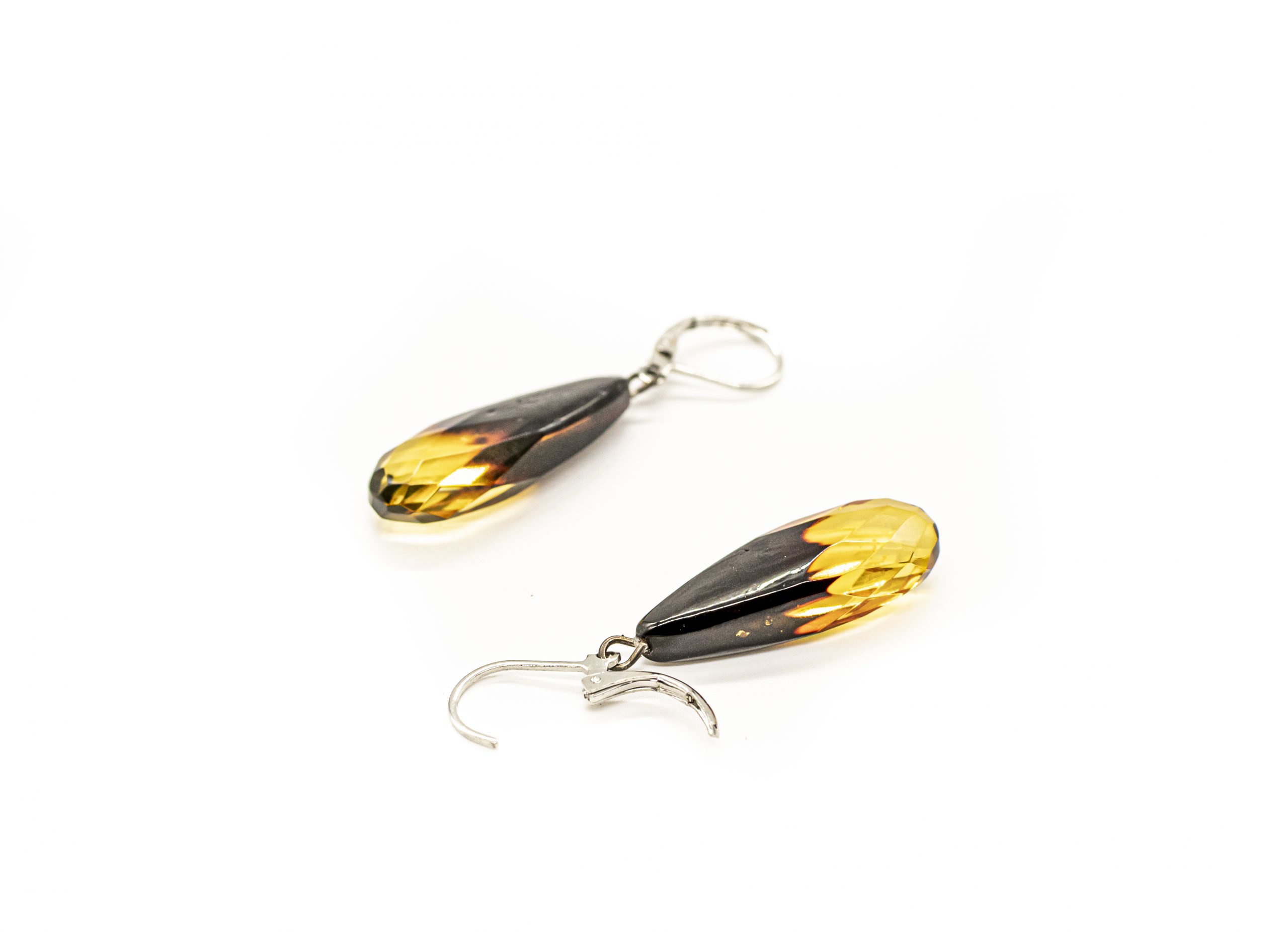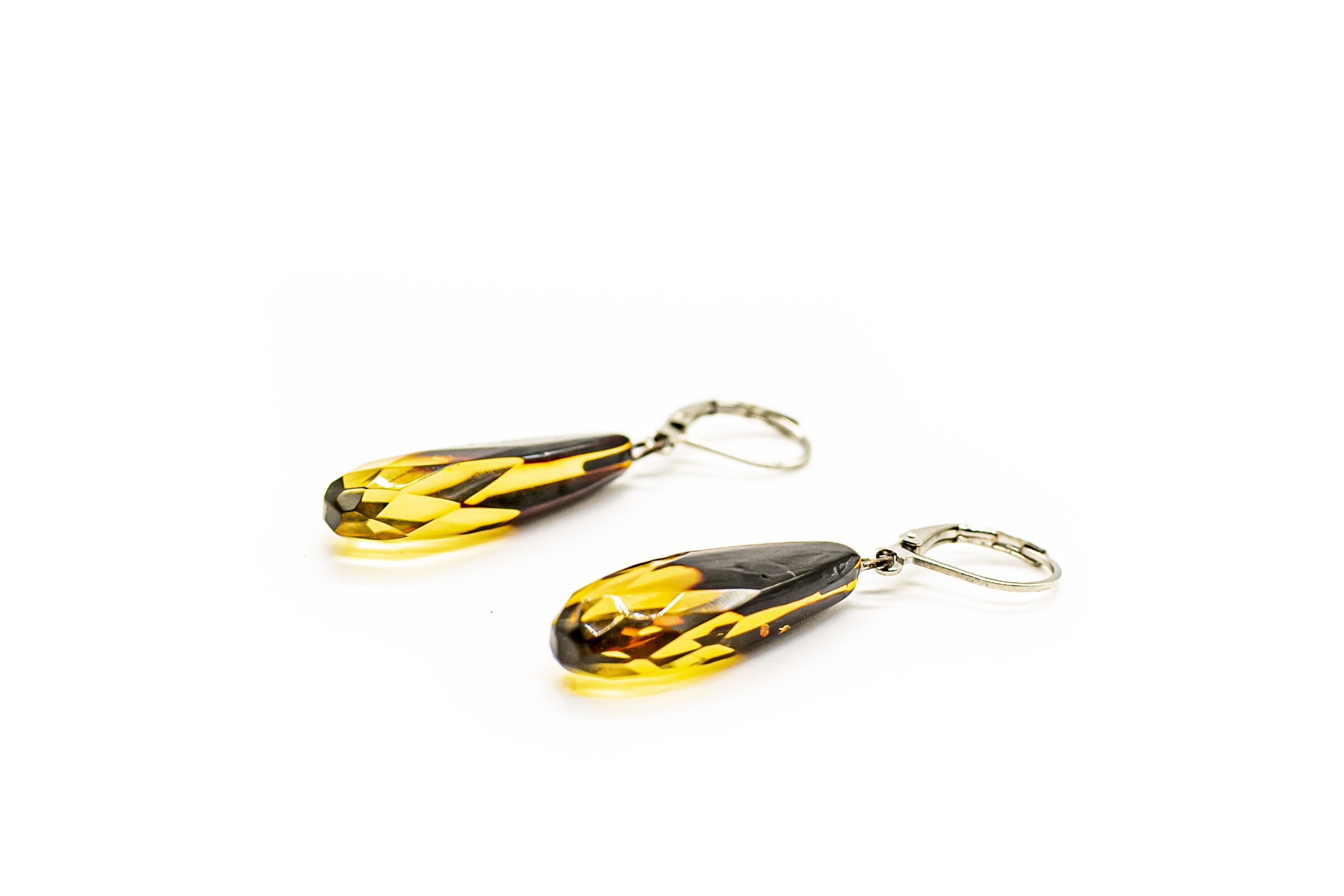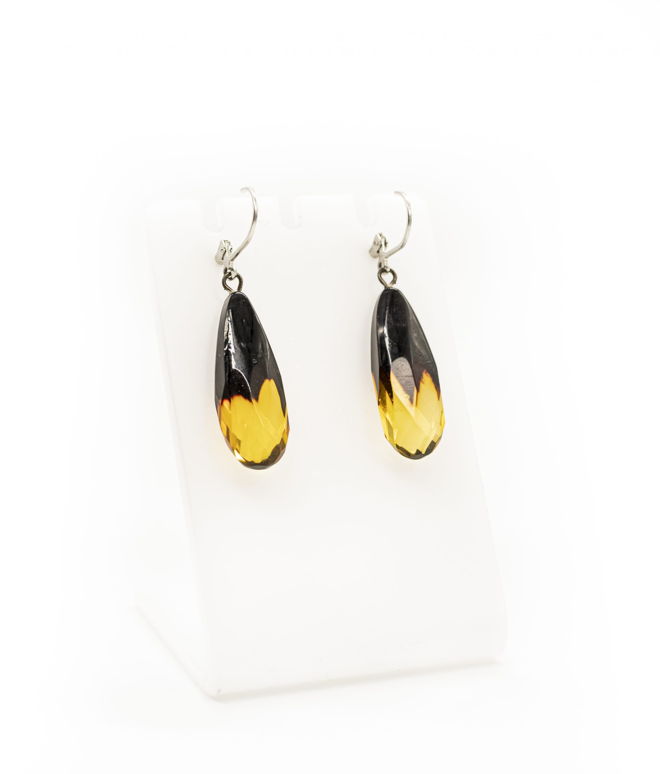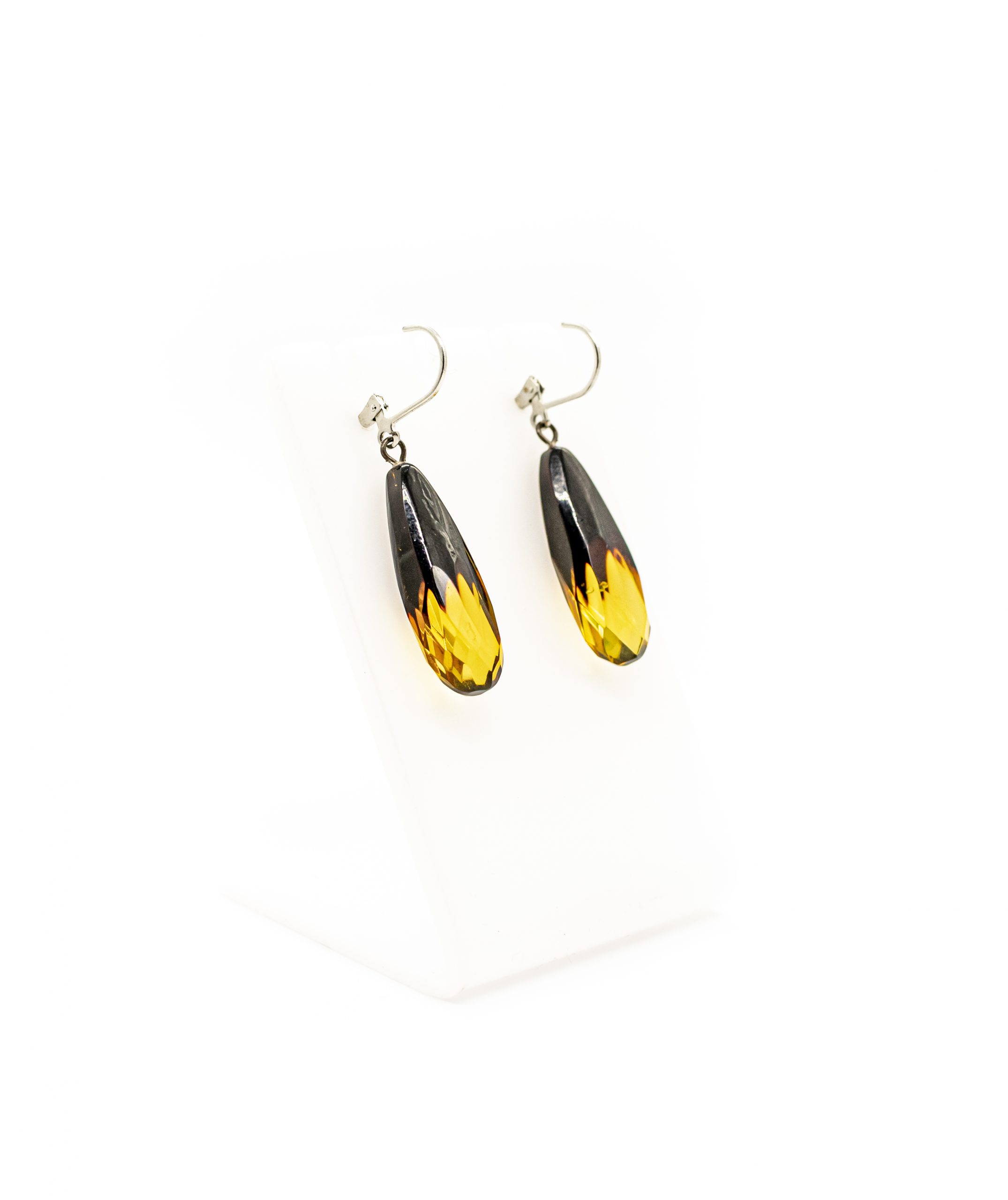 Vidutinio dydžio pereinančių „ombre” spalvų gintariniai auskarai iš žalio padeginto gintaro.
