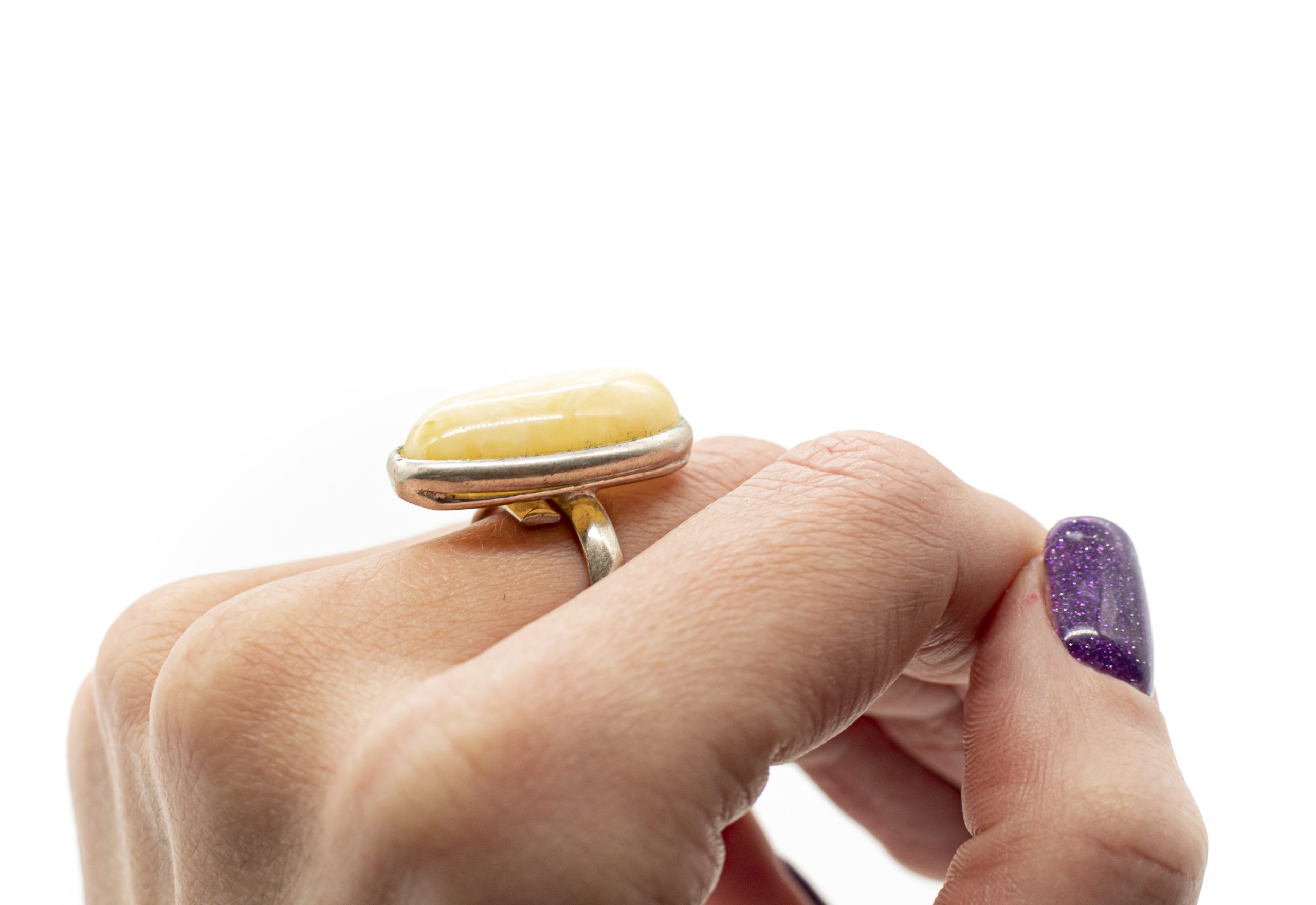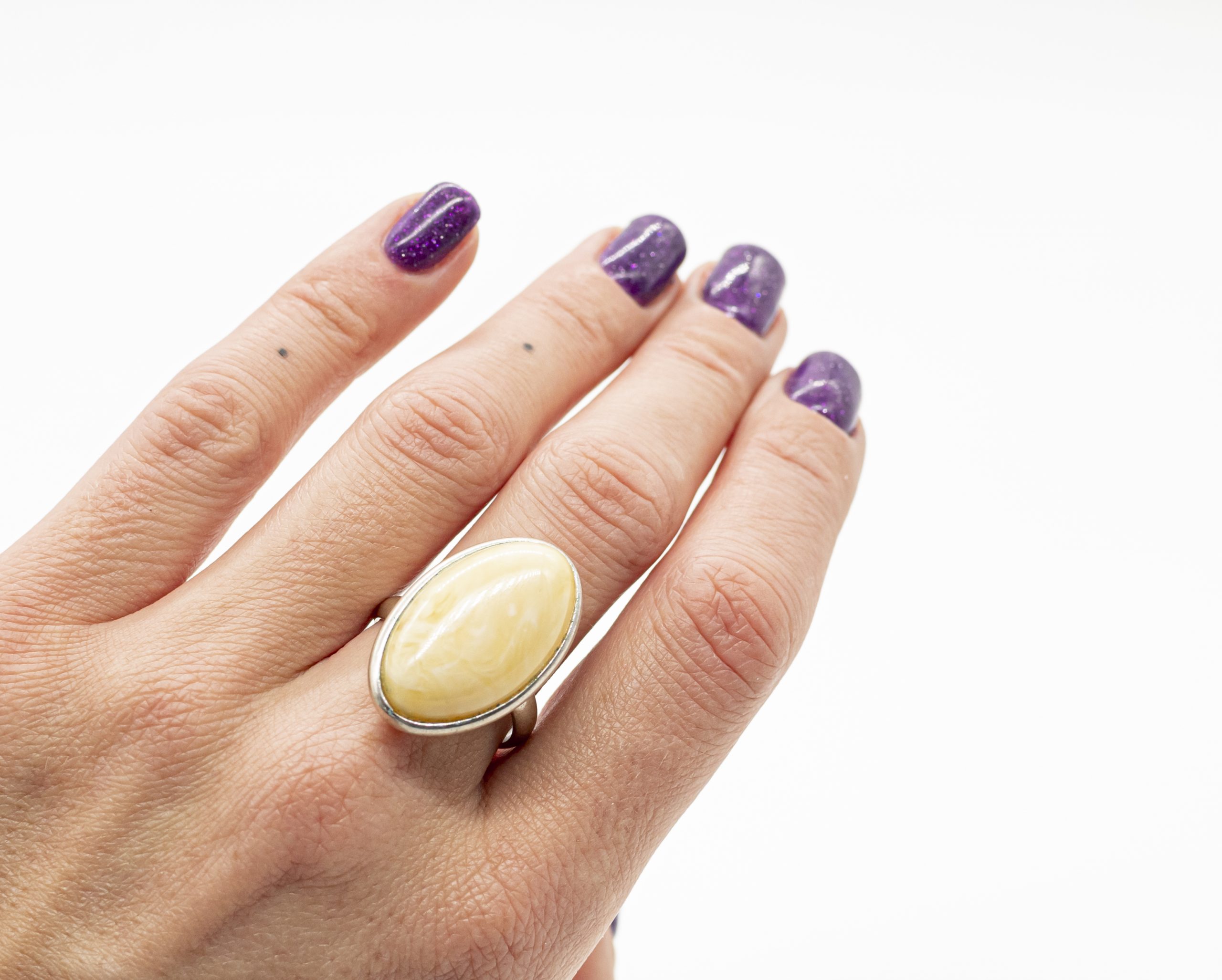 Ovalus balto gintaro žiedas