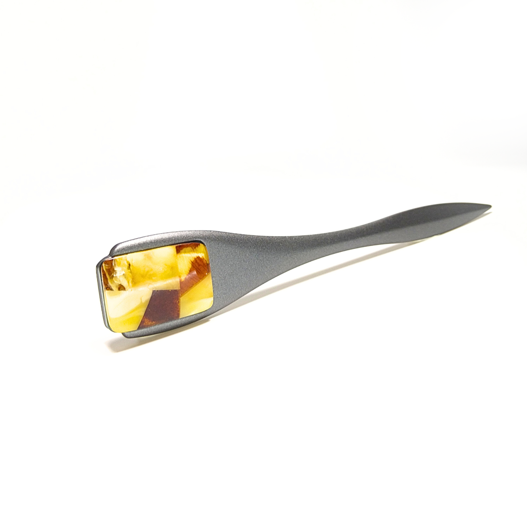 Originalus peiliukas vokams puoštas gintaro plokštele. Patogus laikyti rankoje. Puikiai tiks dovanai.