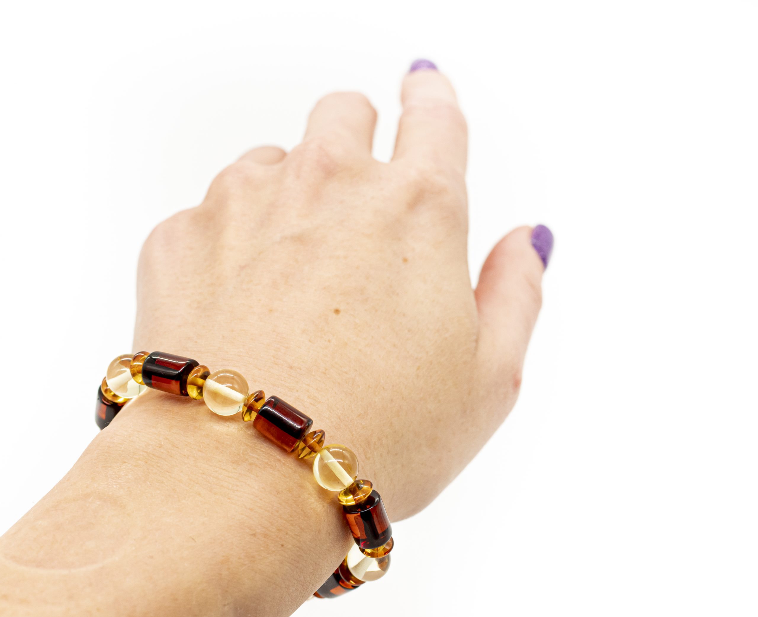 Skirtingų formų gintaro apyrankė