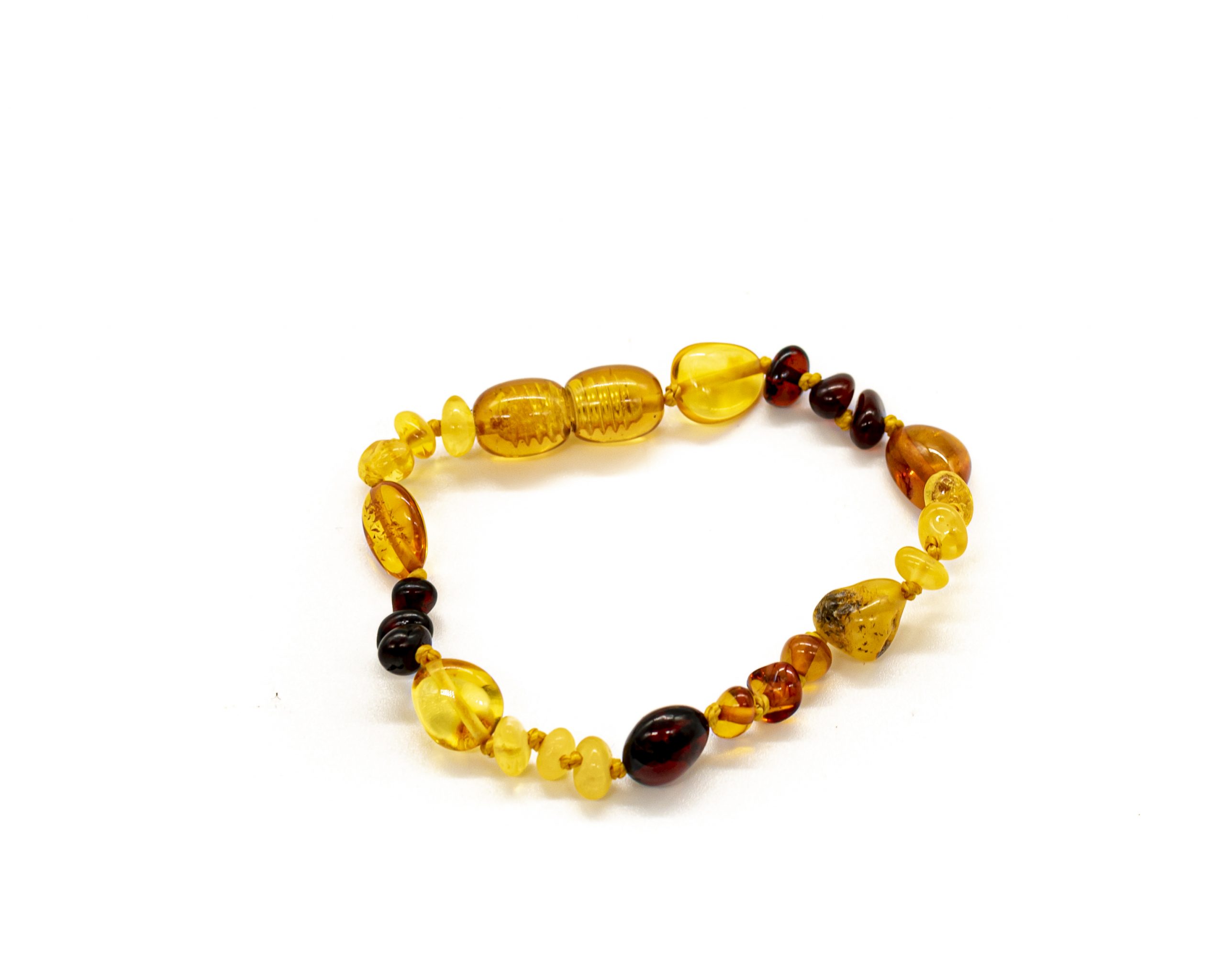 Smulki, daili apyrankė kūdikiams ir vaikams. Natūralus Baltijos gintaras, užsukamas plastikinis užsegimas. Slyvos formos šlifuoto gintaro burbuliukai, įvairių spalvų gintaras.