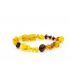 Smulki, daili apyrankė kūdikiams ir vaikams. Natūralus Baltijos gintaras, užsukamas plastikinis užsegimas. Slyvos formos šlifuoto gintaro burbuliukai, tamsaus konjako spalvos gintaras.