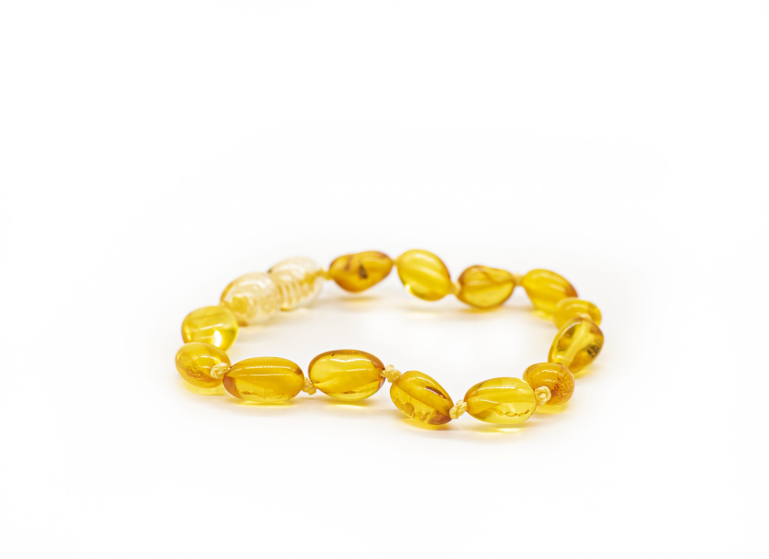 Smulki, daili apyrankė kūdikiams ir vaikams. Natūralus Baltijos gintaras, užsukamas plastikinis užsegimas. Slyvos formos šlifuoto gintaro burbuliukai, apelsino spalvos gintaras.
