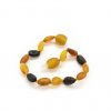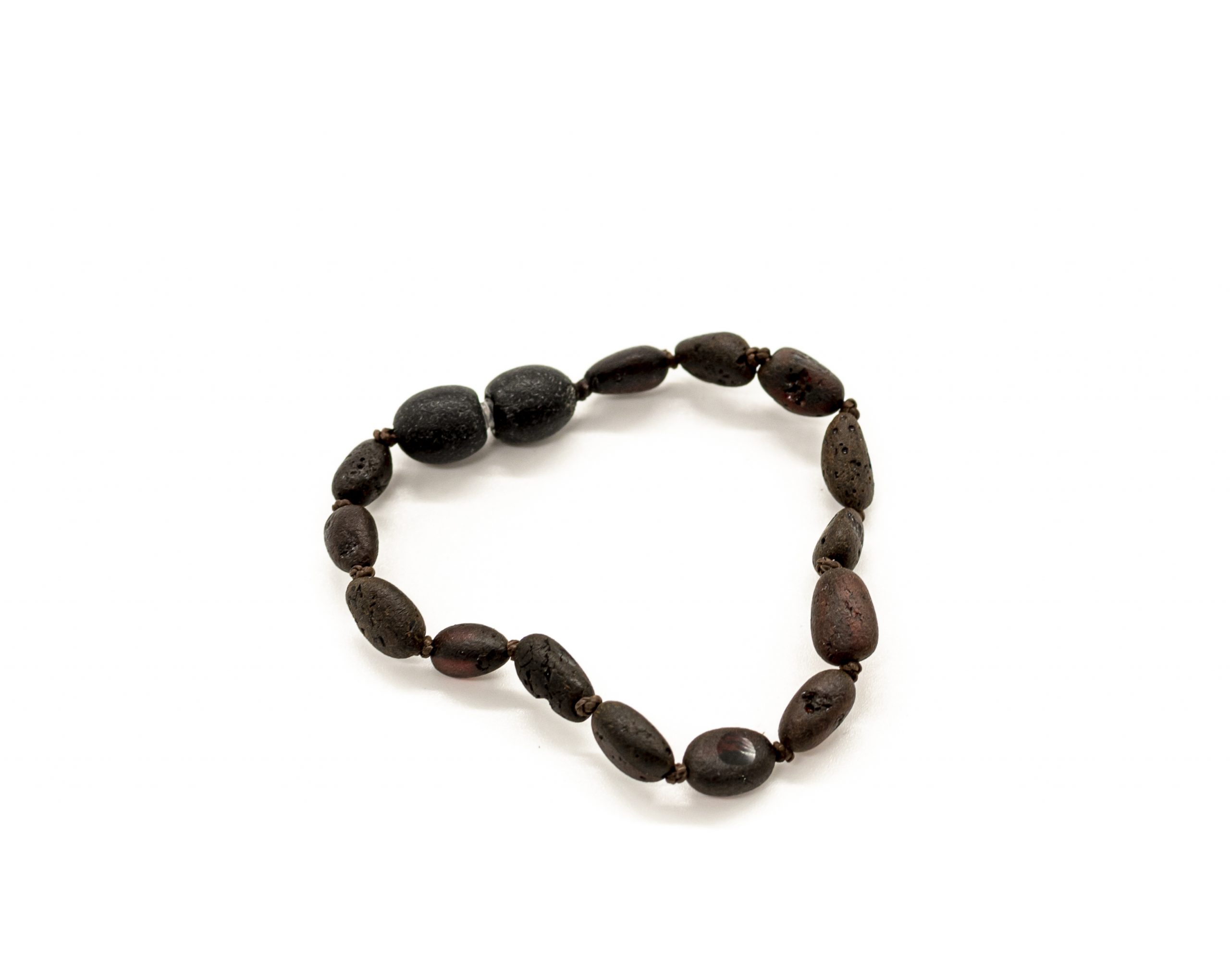 Smulki, daili apyrankė kūdikiams ir vaikams. Natūralus Baltijos gintaras, užsukamas plastikinis užsegimas. Slyvos formos nešlifuoto gintaro burbuliukai, tamsios spalvos gintaras.