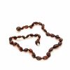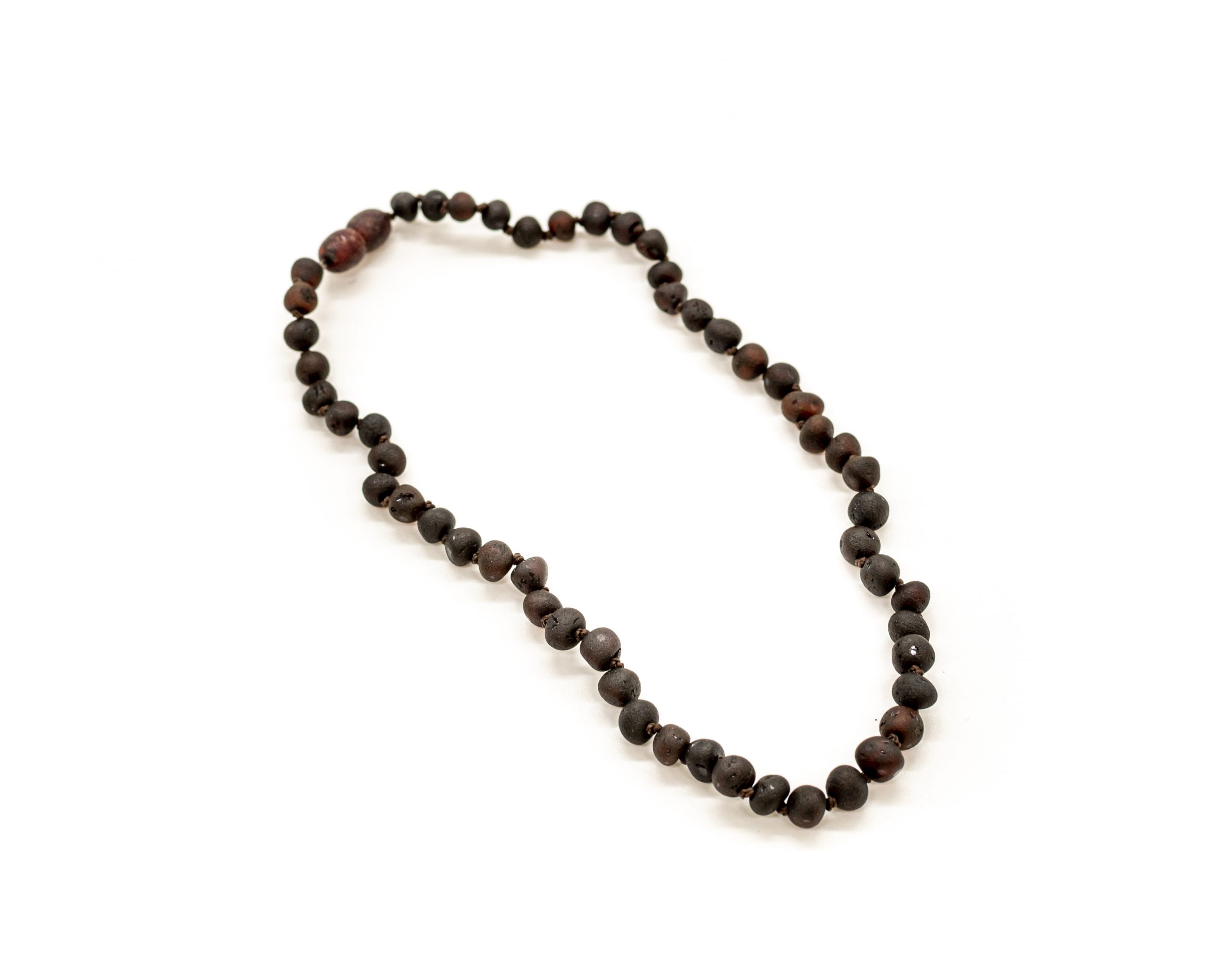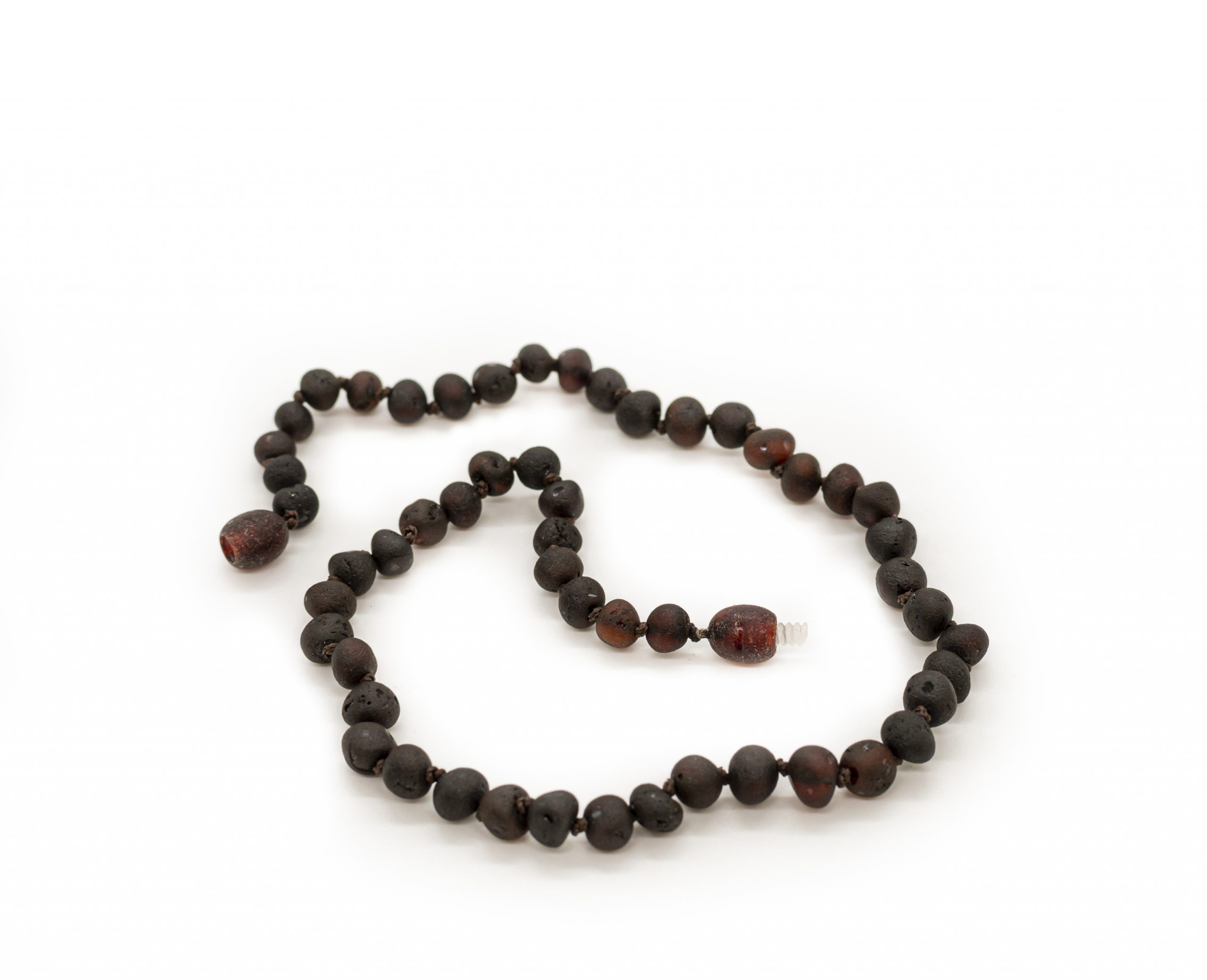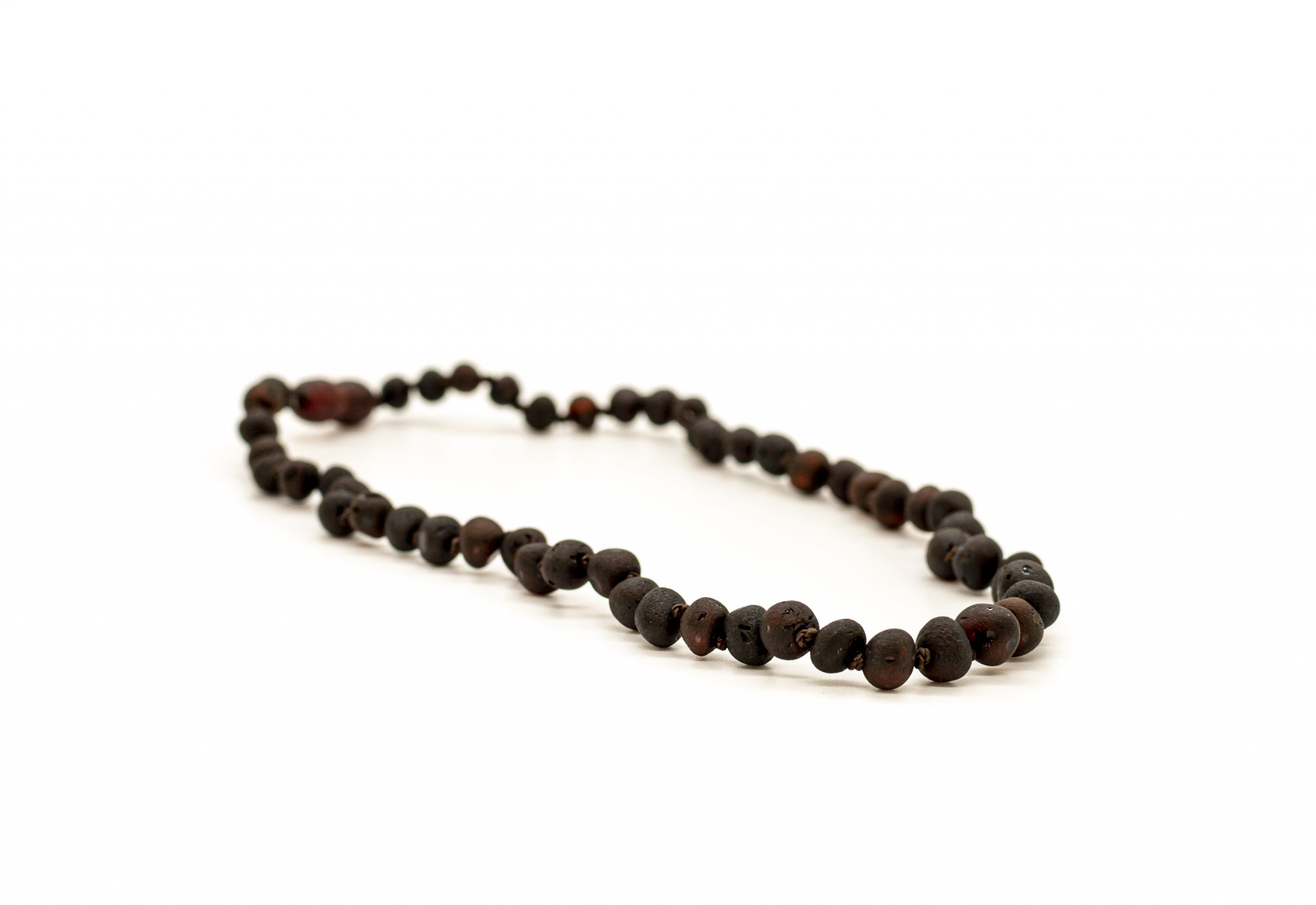 Smulkūs, dailūs karoliukai kūdikiams ir vaikams. Natūralus Baltijos gintaras, užsukamas plastikinis užsegimas. Barokiniai nešlifuoto gintaro burbuliukai, tamsios spalvos gintaras.