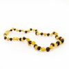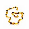 Smulkūs, dailūs karoliukai kūdikiams ir vaikams. Natūralus Baltijos gintaras, užsukamas plastikinis užsegimas. Slyvos formos nešlifuoto gintaro burbuliukai, šviesaus konjako spalvos gintaras.