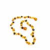 Smulkūs, dailūs karoliukai kūdikiams ir vaikams. Natūralus Baltijos gintaras, užsukamas plastikinis užsegimas. Barokiniai šlifuoto gintaro burbuliukai, baltos spalvos gintaras.