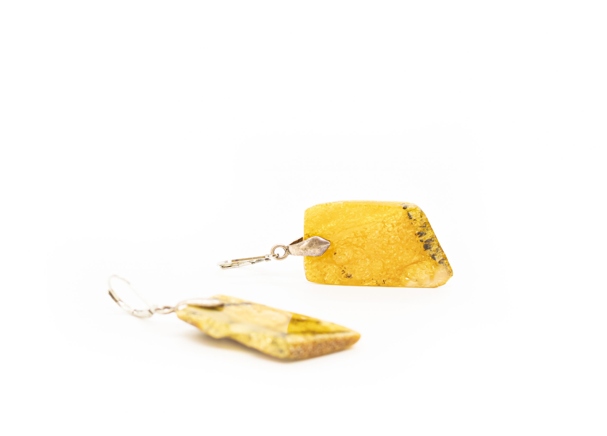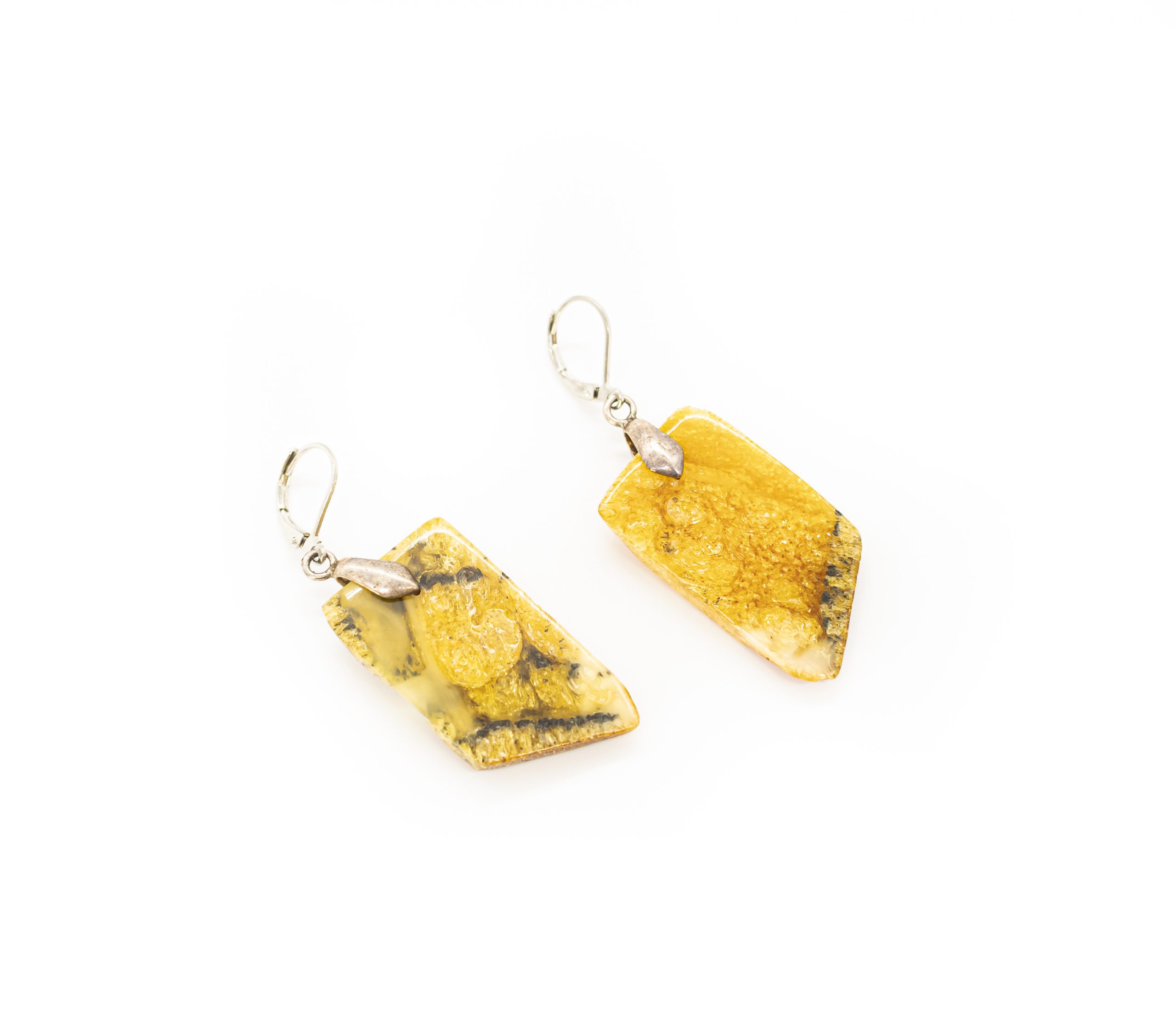 Itin originalios tekstūros šviesaus nepermatomo gintaro auskarai su melchioro užsegimu.