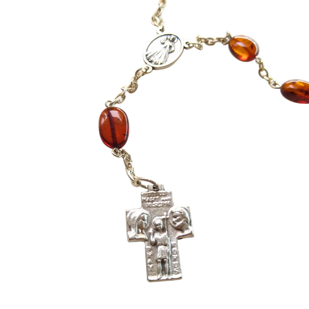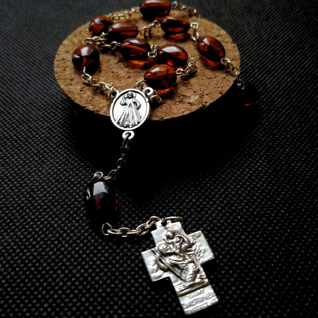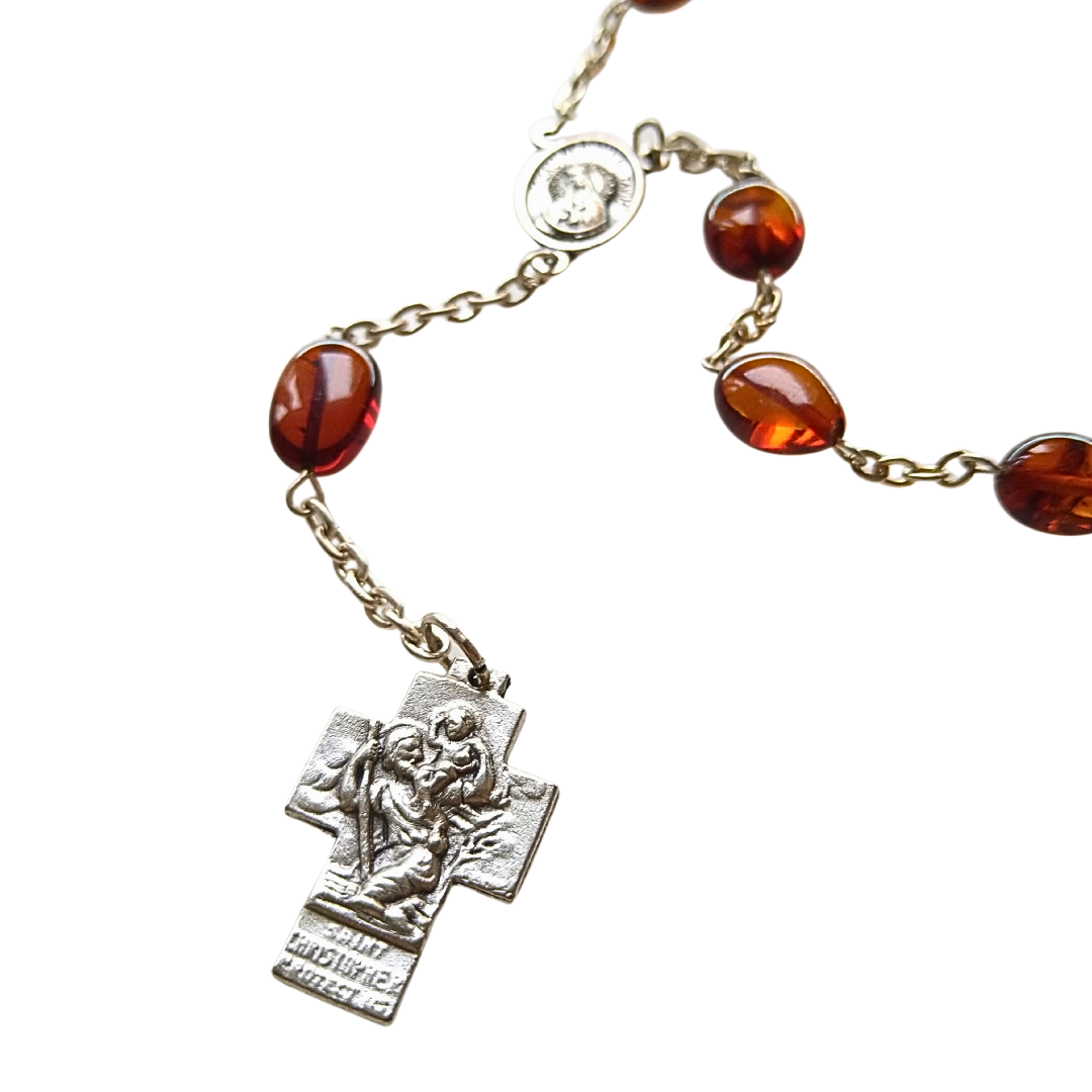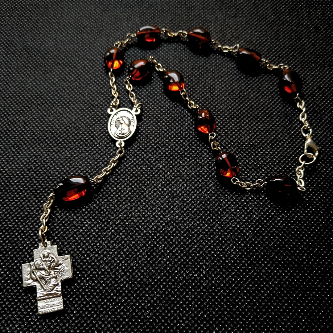 Skaidraus tamsaus gintaro „pupelių” kelioninis rožinis.