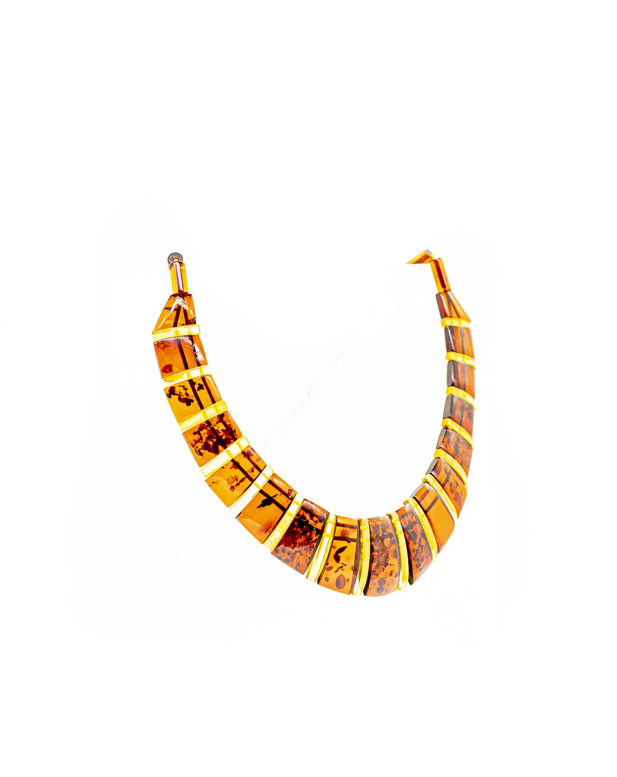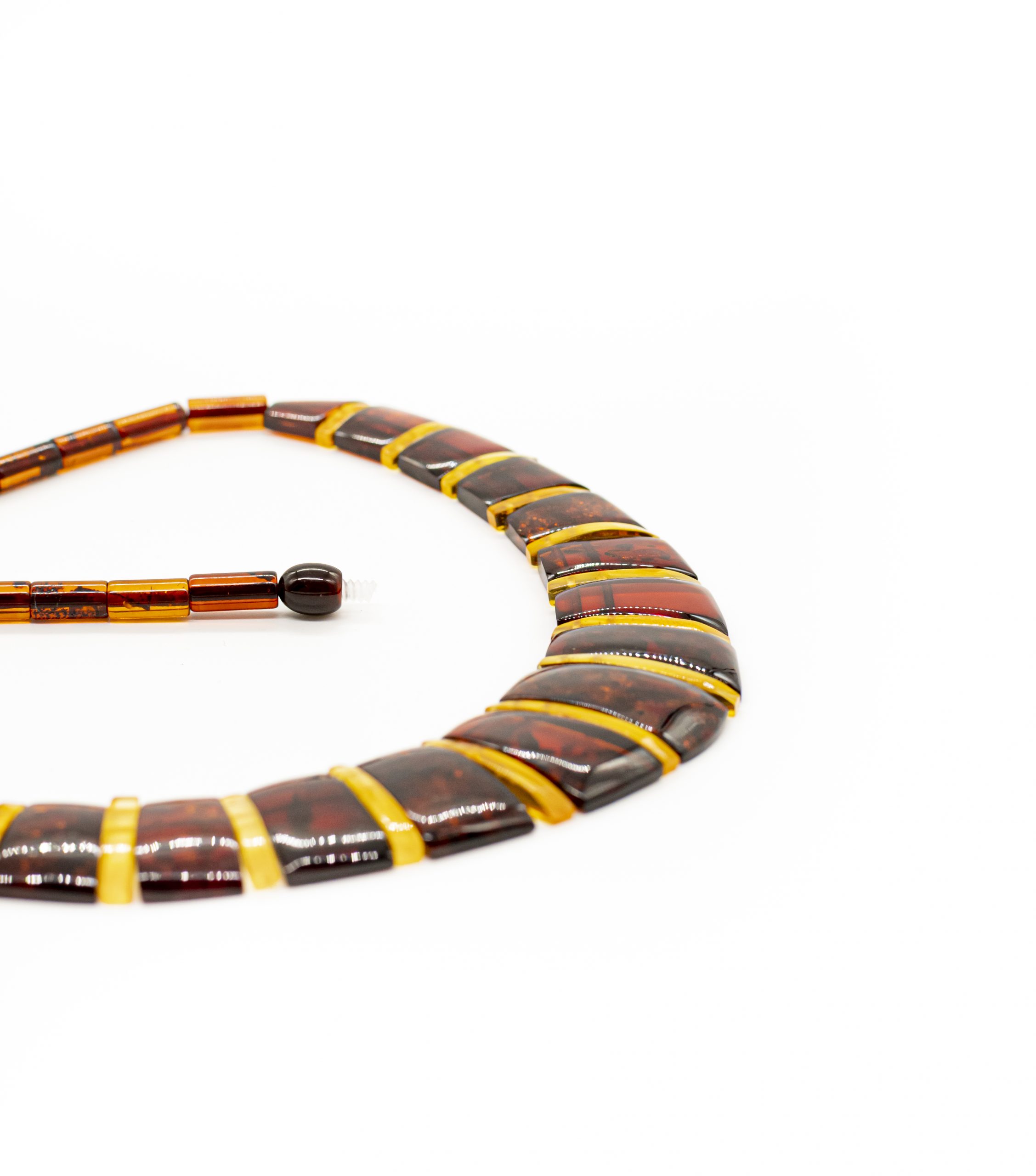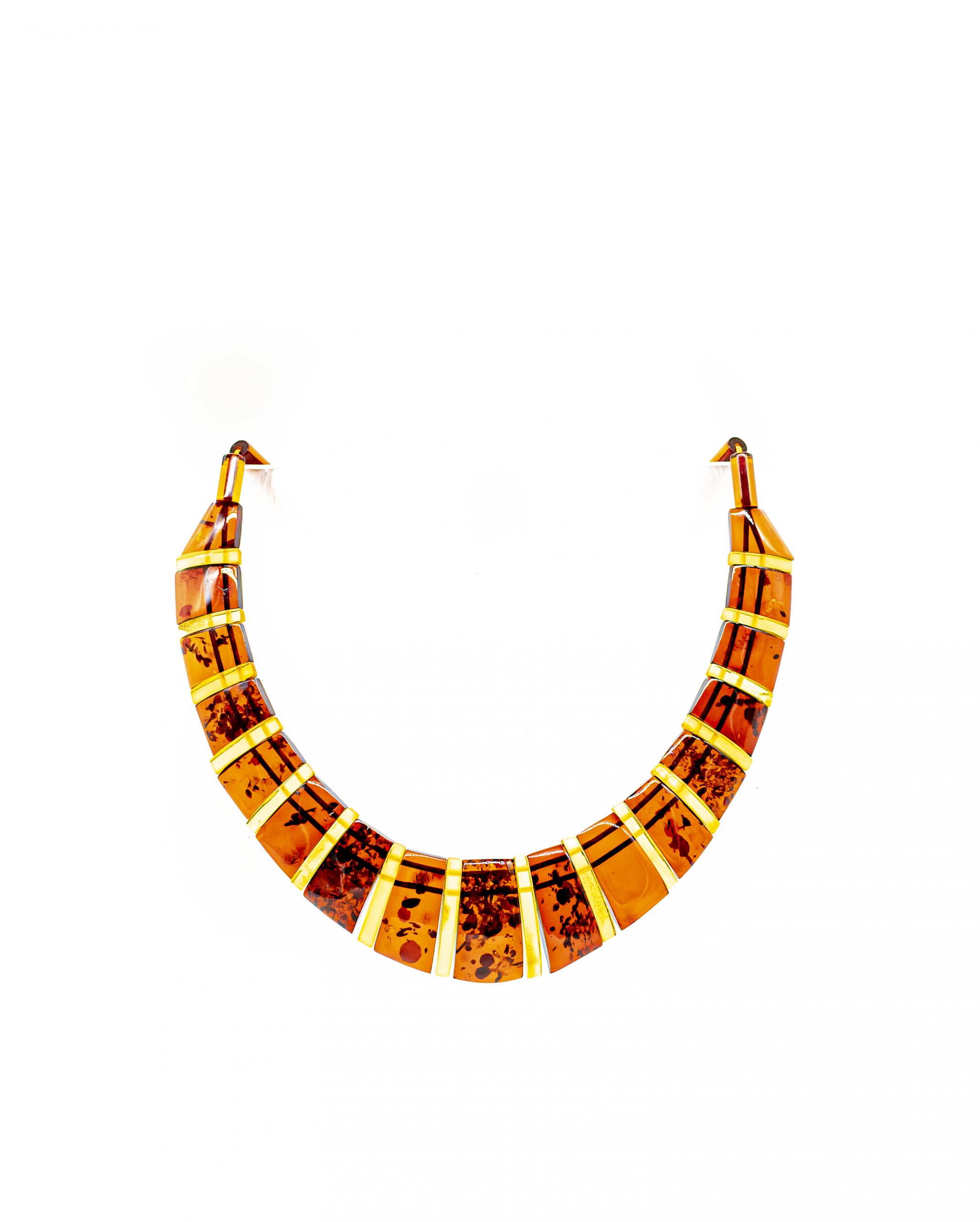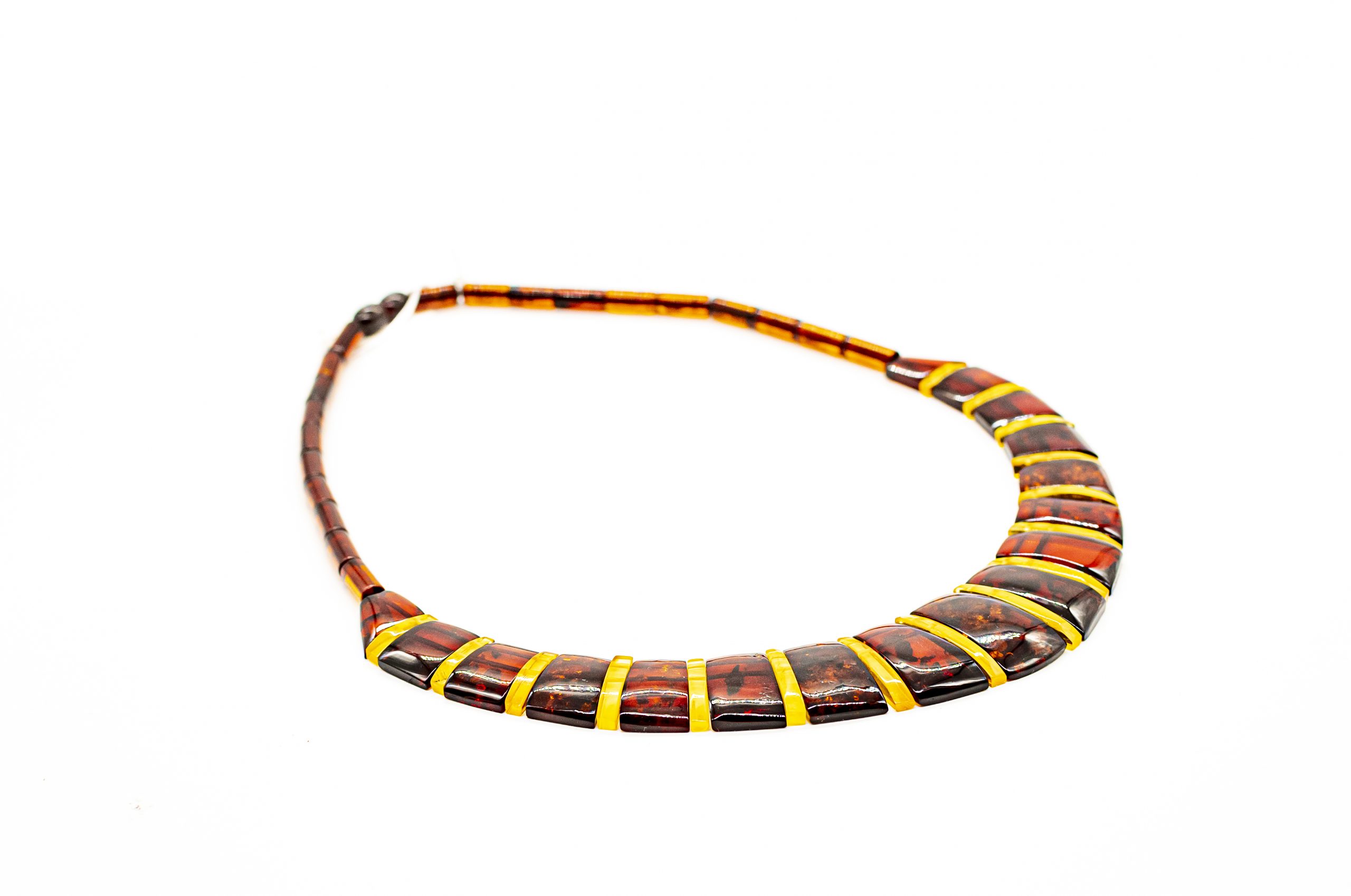 Tamsaus rudo gintaro koljė su šviesaus gintaro intarpais.