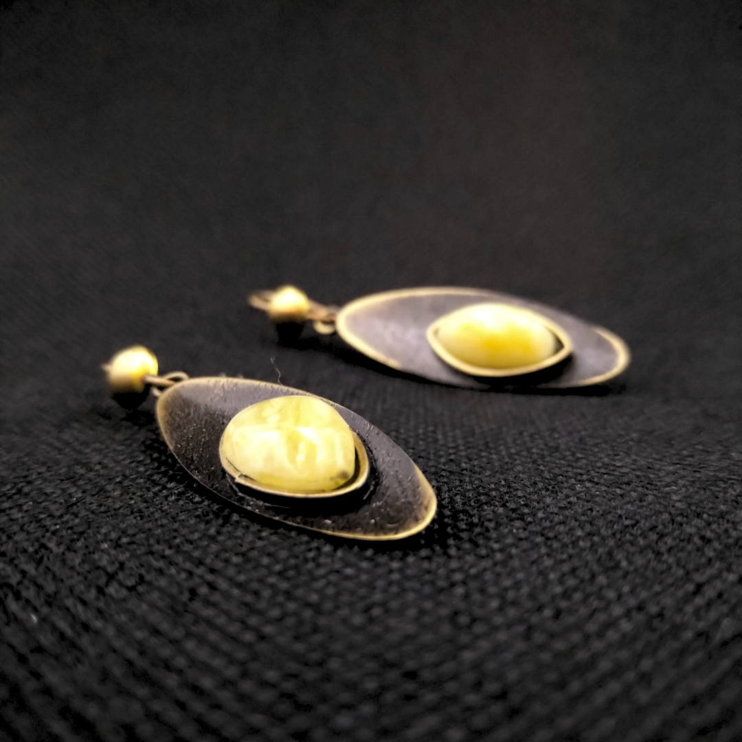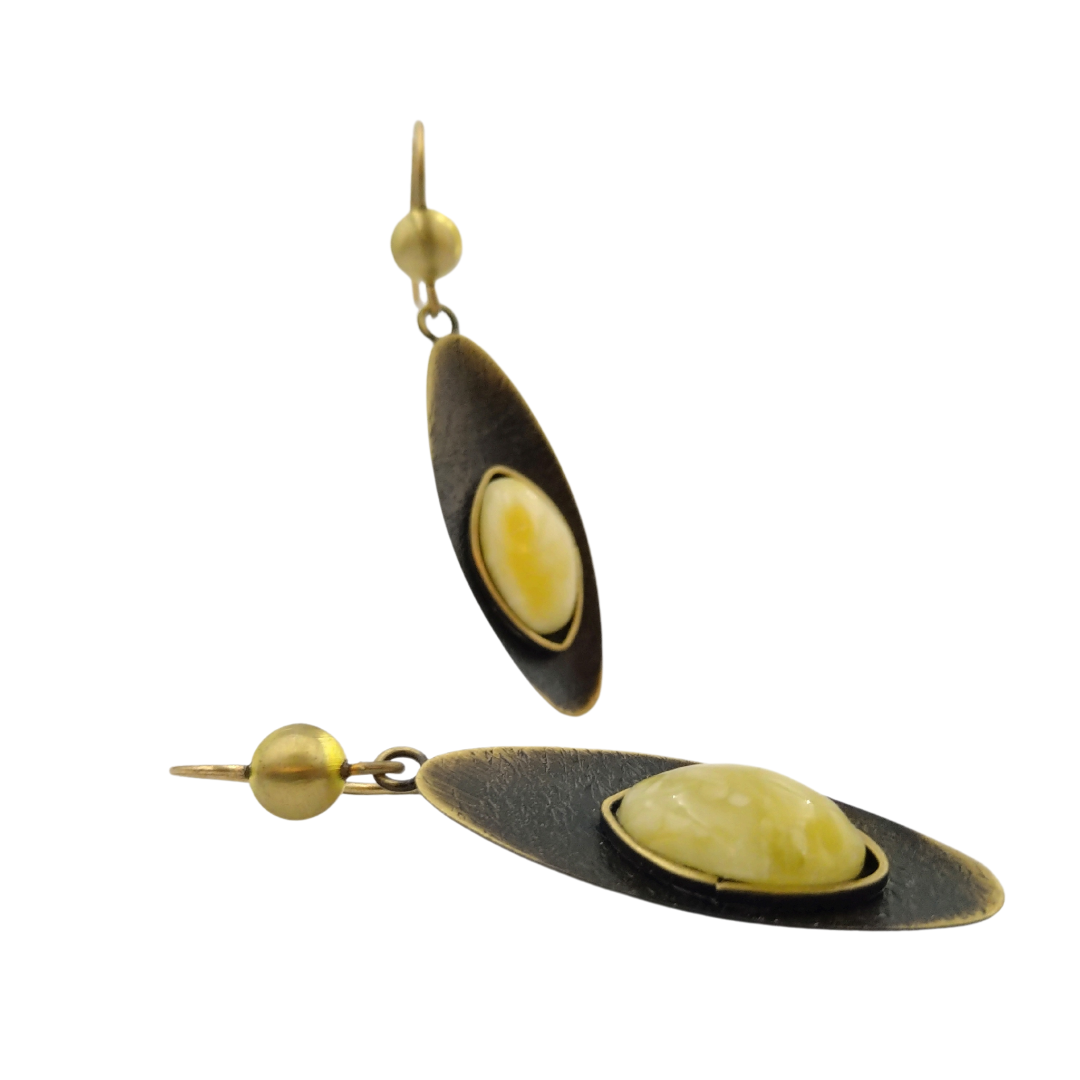 Auskarų dydis be kabliukų ~ 14 x 44 mm. Gintariuko dydis ~ 9 x 16 mm.